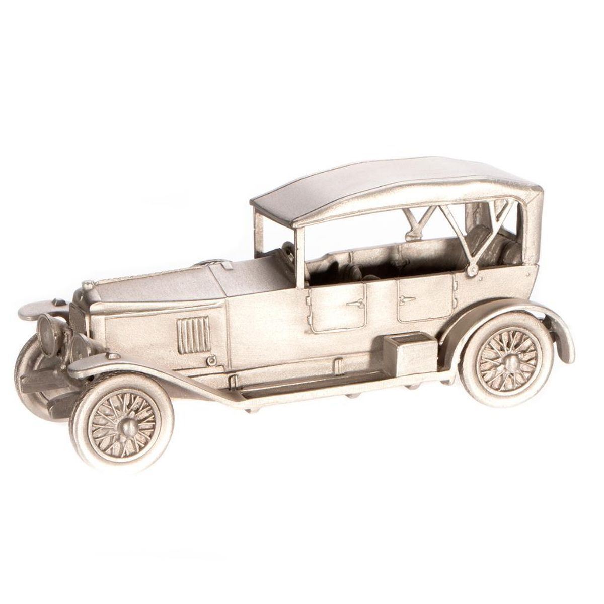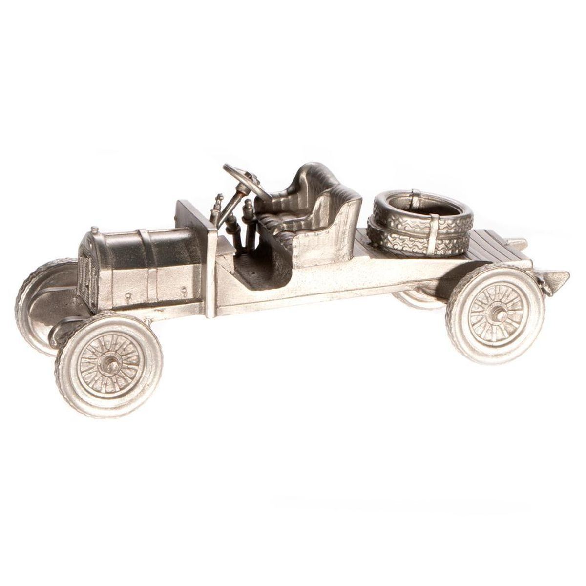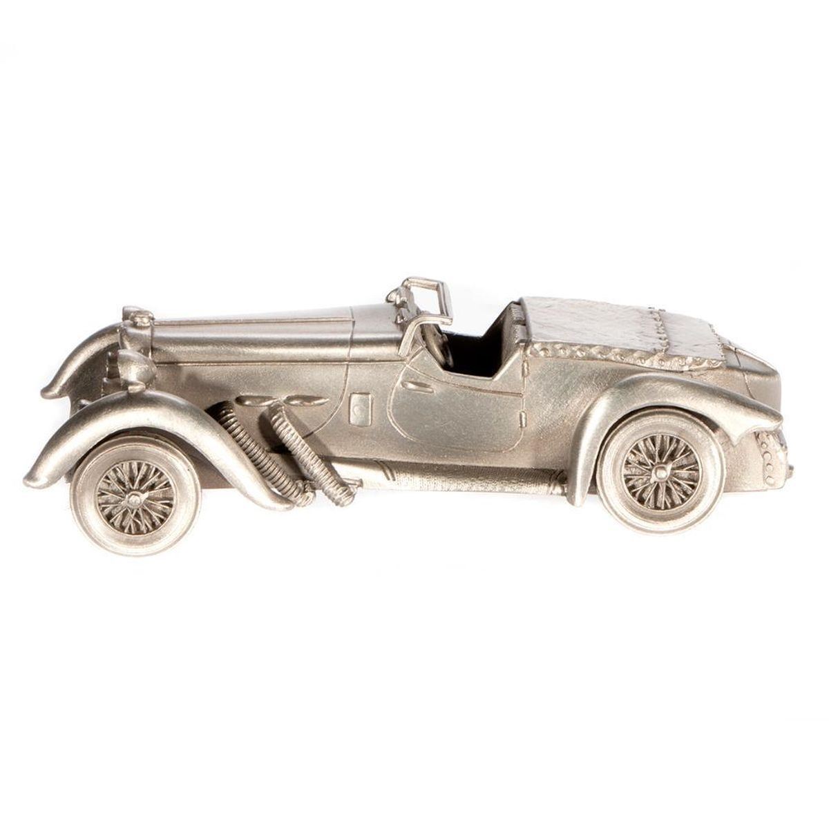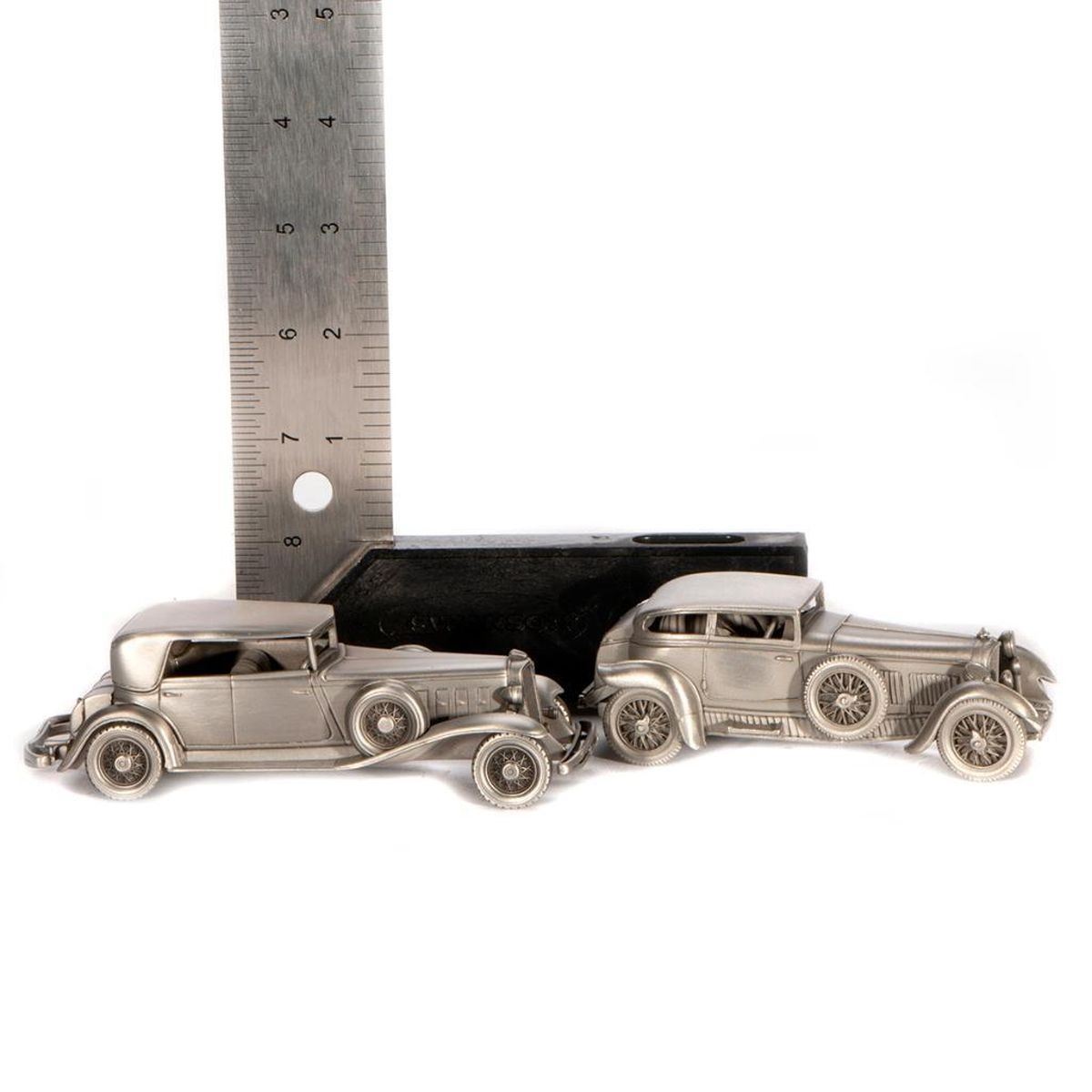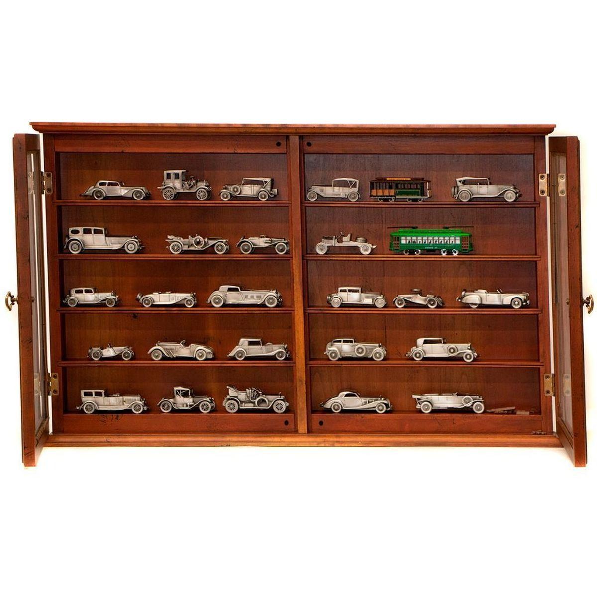 "Classic Cars of the World". A collection of pewter model classic cars and glass case.