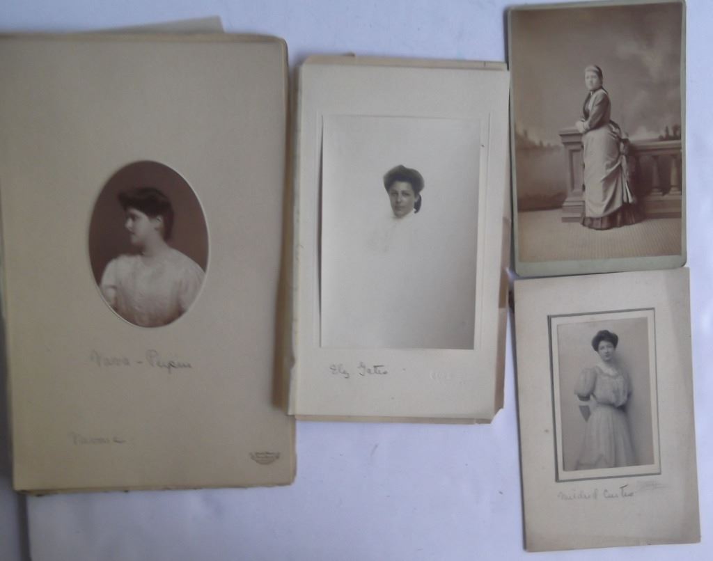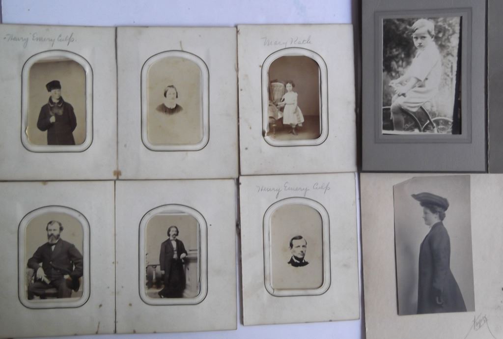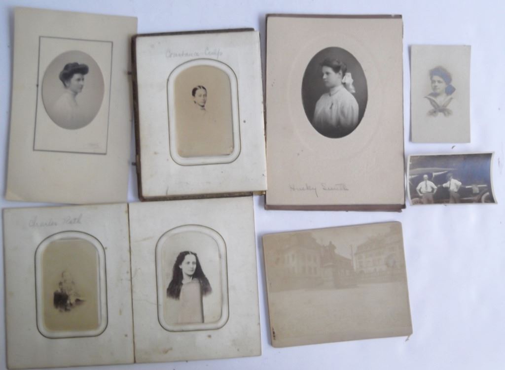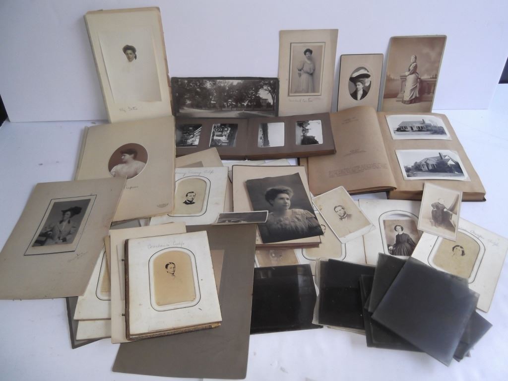 Collection of photos including cabinet cards, album not complete & 15 glass slides.