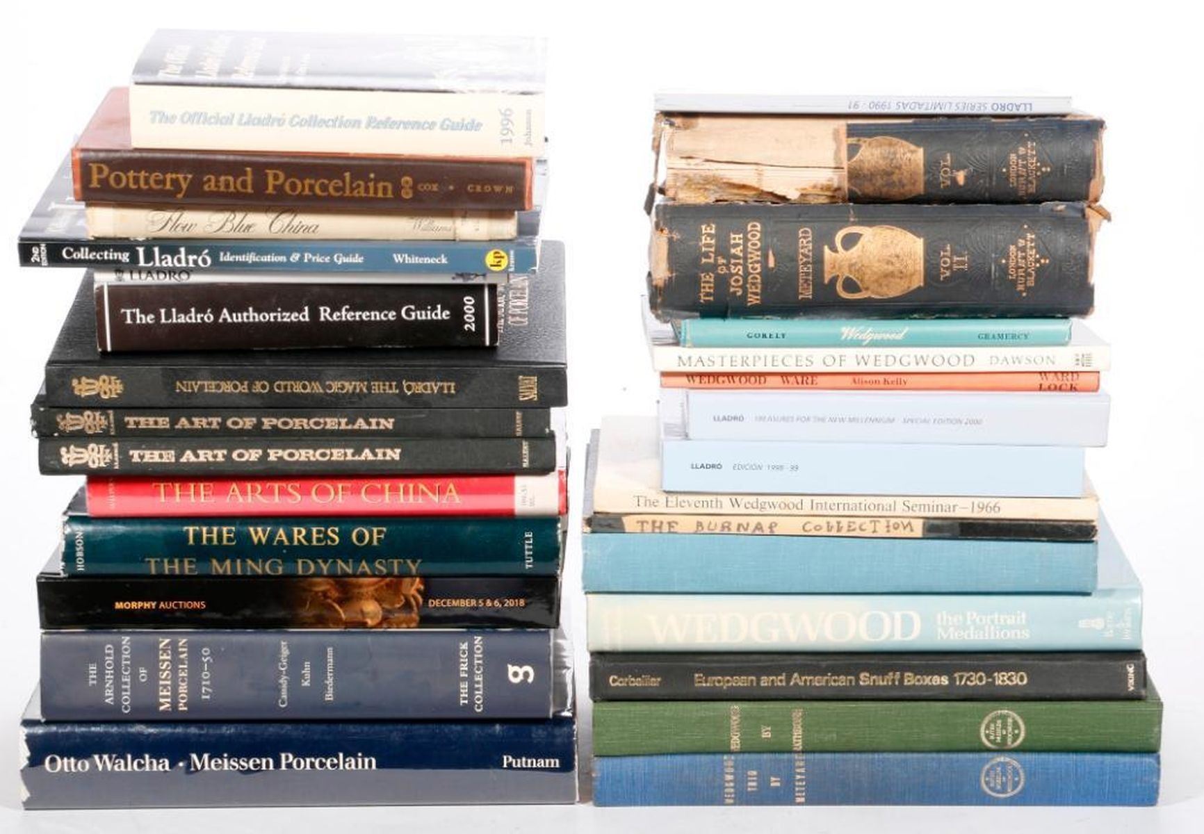 A collection of reference books on antique porcelain.