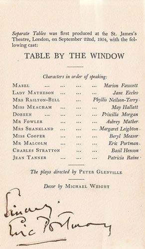A Day by the Sea by N.C. Hunter, English Theatre Guild, London 1954 pp. 77, with signatures of John Gielgud and Irene Worth. Separate Tables by Terence Rattigan, Hamish Hamilton, London 1955 pp. 119, with signatures of Eric Portman and Margaret Leighton. Other plays with signatures include Edith Evans, Graham Greene etc. (12 items)