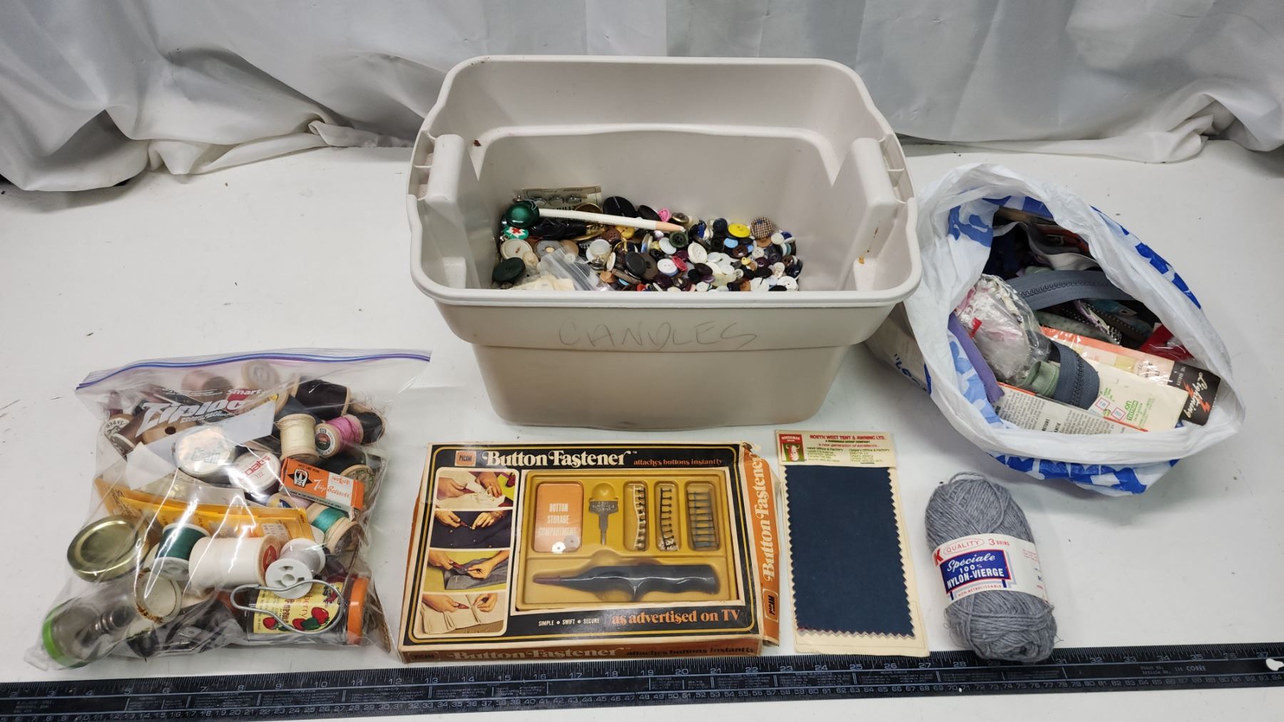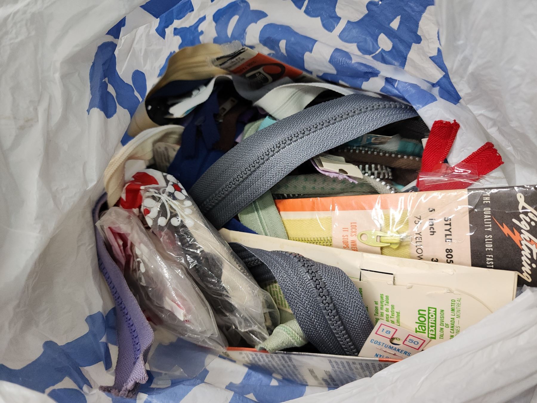 Collection of sewing psupplies - Thread, zippers, buttons, etc.