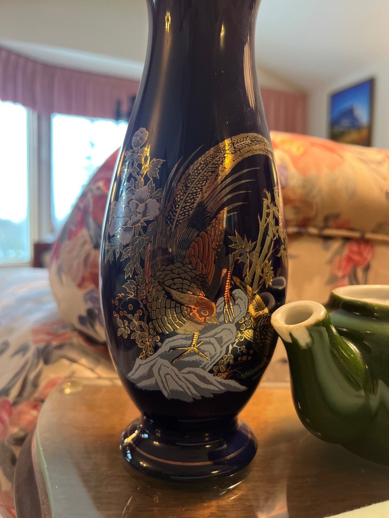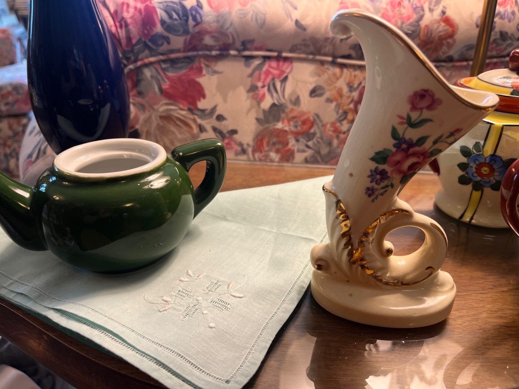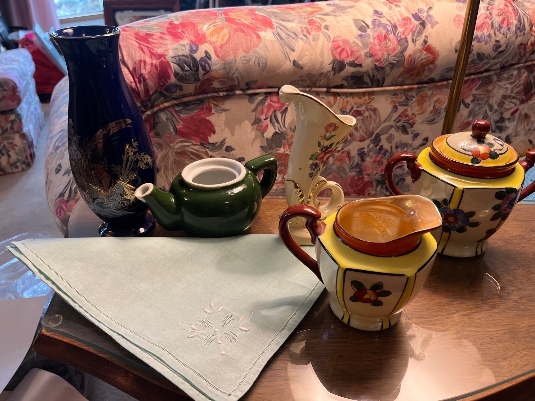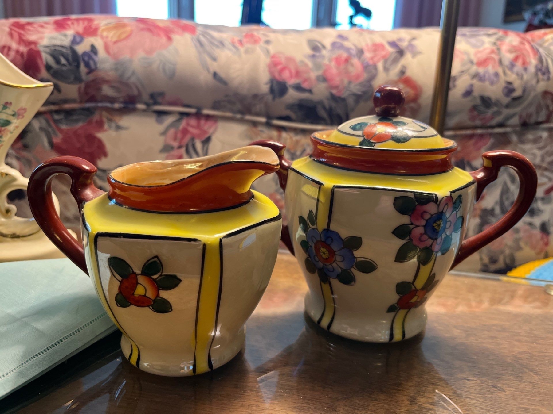 Collection of small vases hand painted cream and sugar bowl made in Japan .