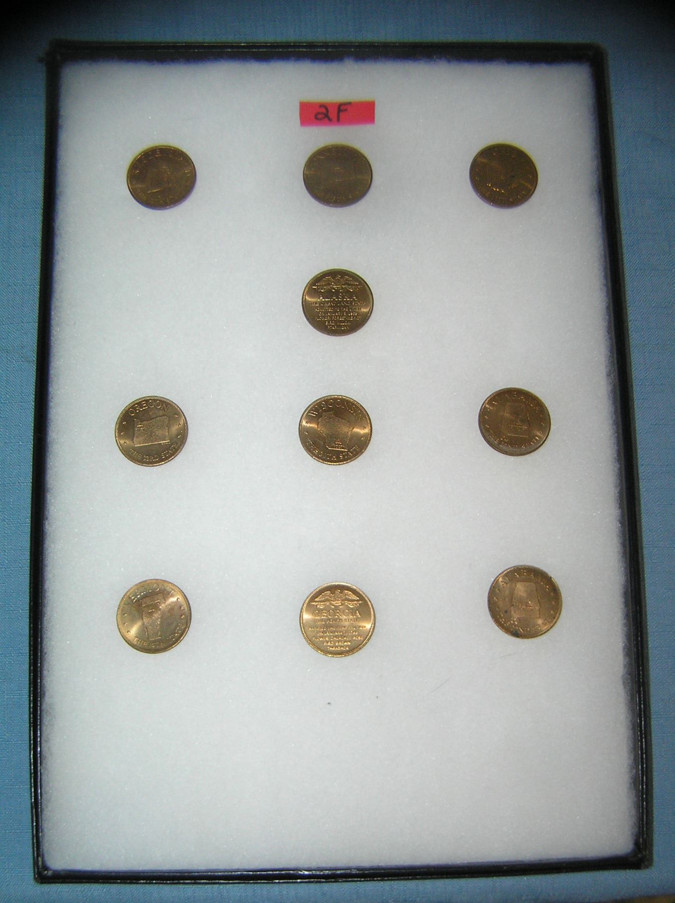 Collection of solid brass US state commemoratives est. value $35.00-$45.00