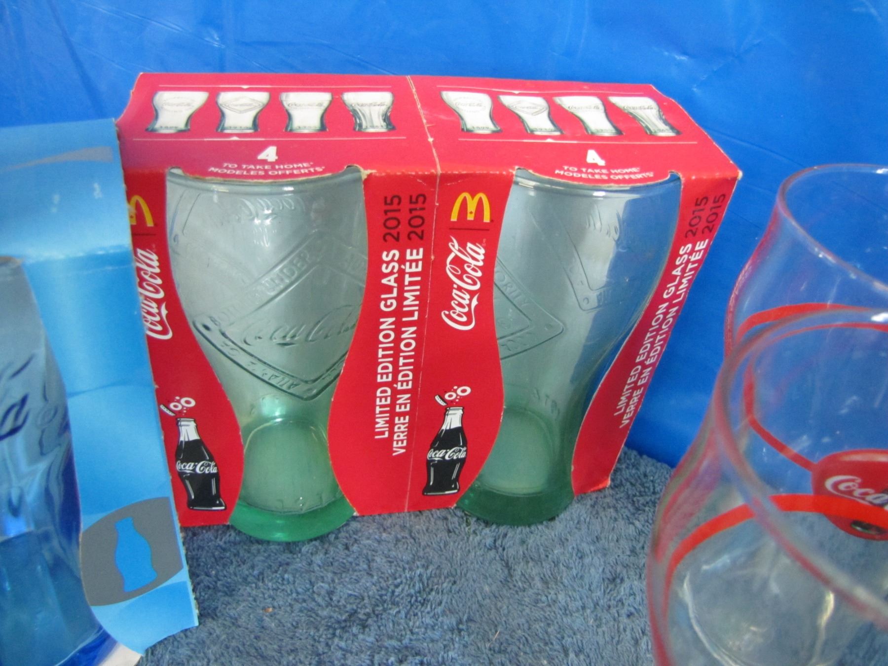 Collection of various Coca-Cola drinking glasses McDonald's etc