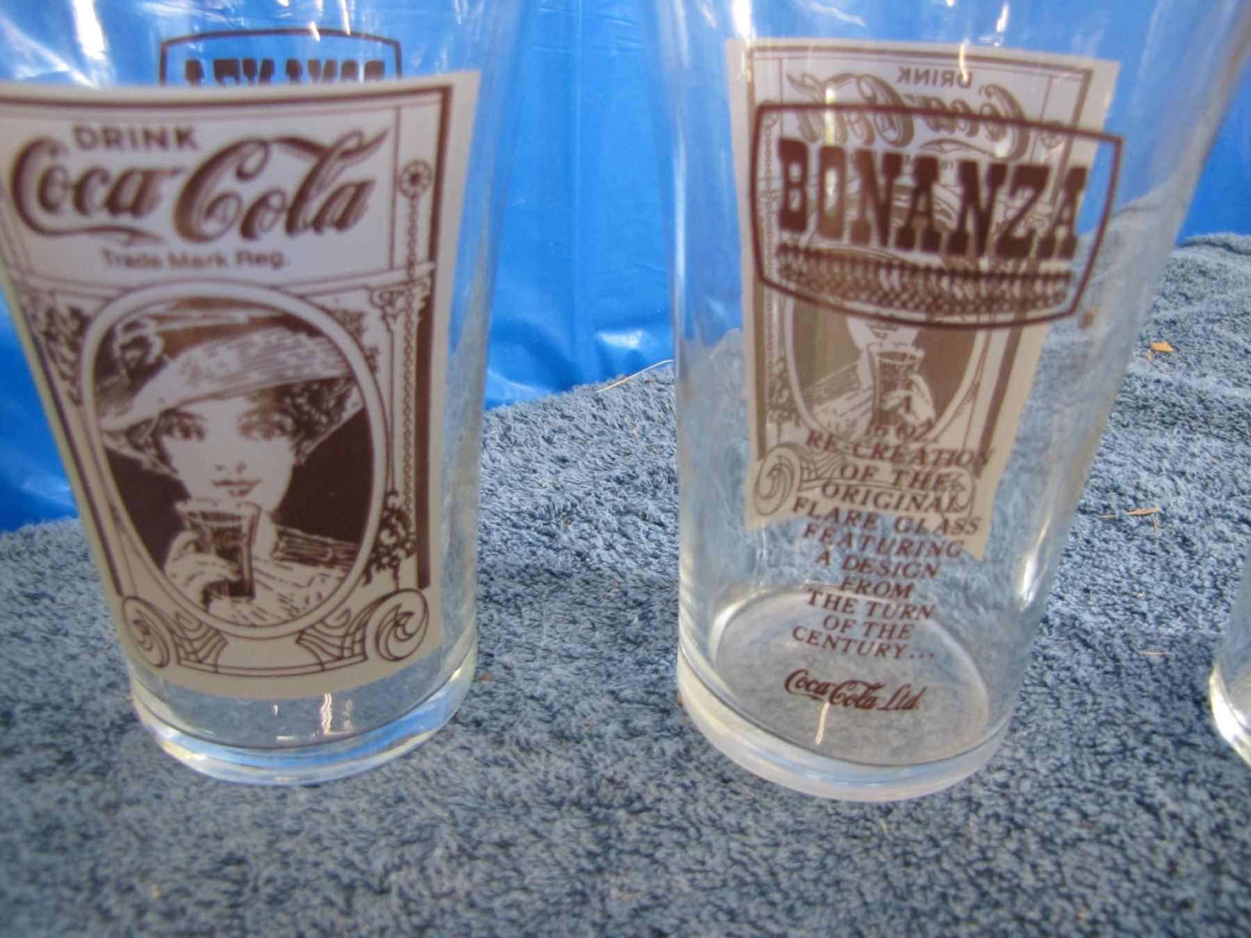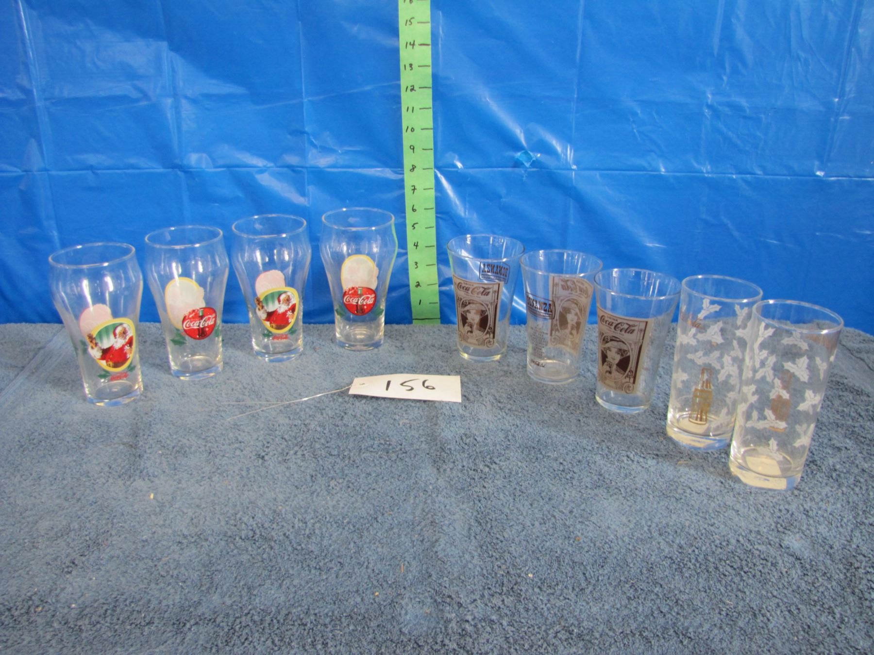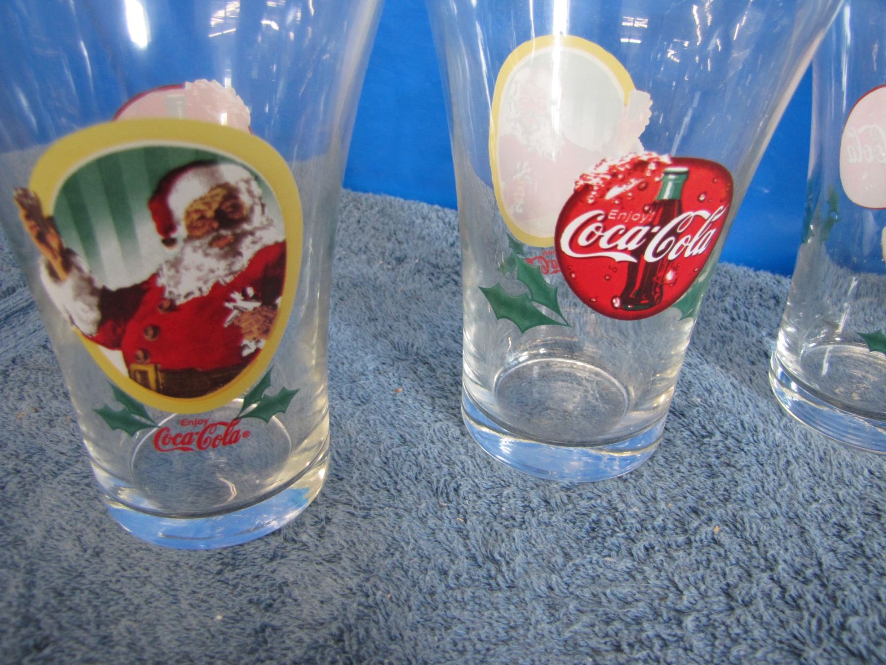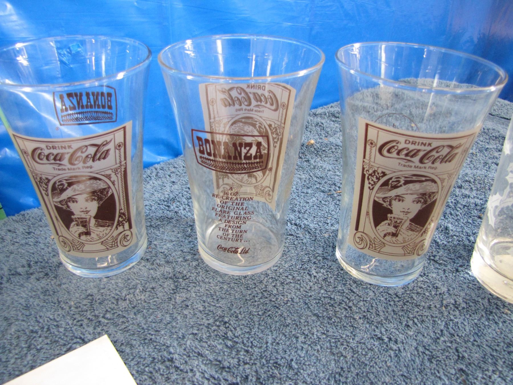Collection of various Coca-Cola drinking glasses