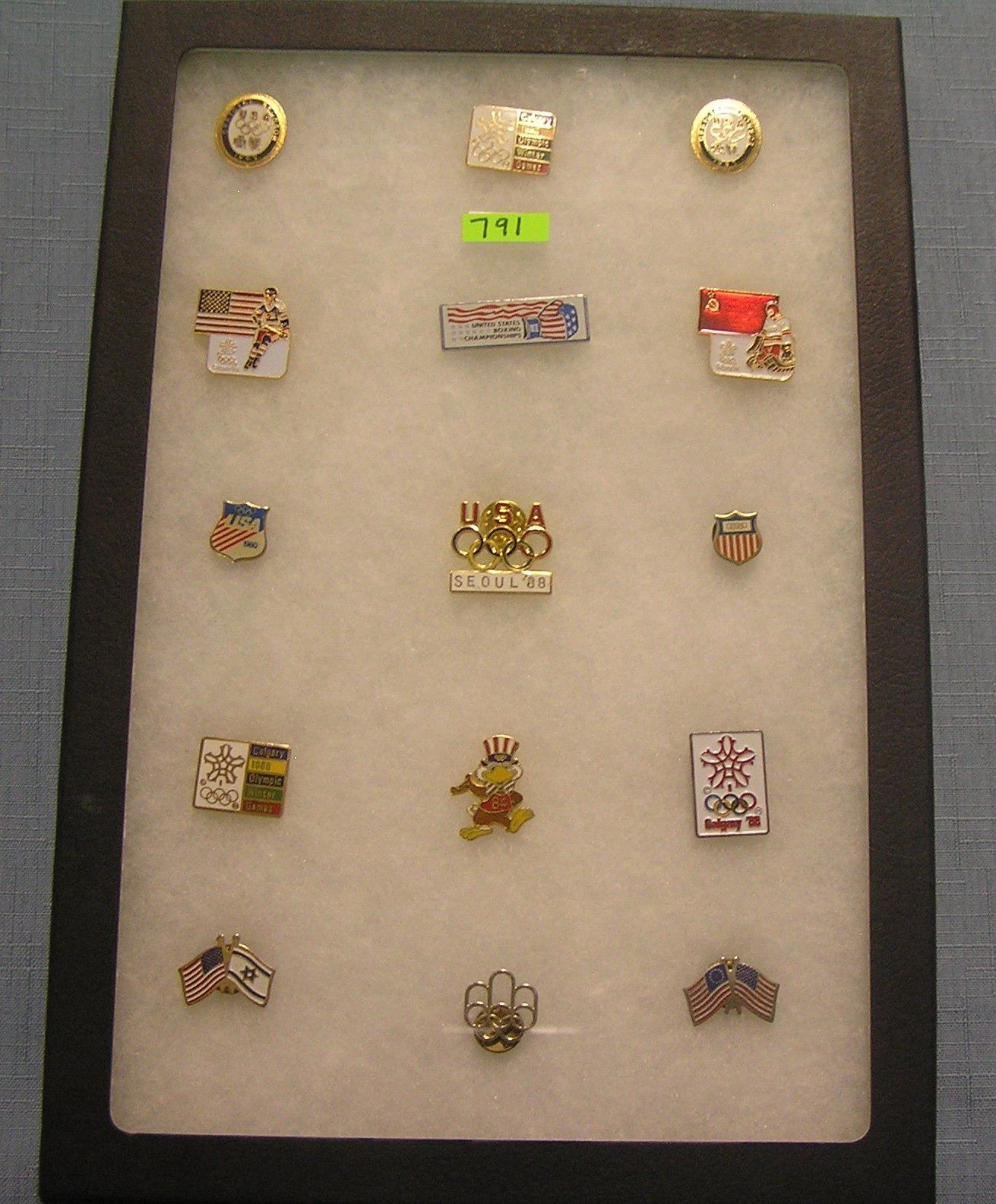 Collection of vintage Olympic pins featuring Boxing, Hockey, and more est. value $225.00-$275.00