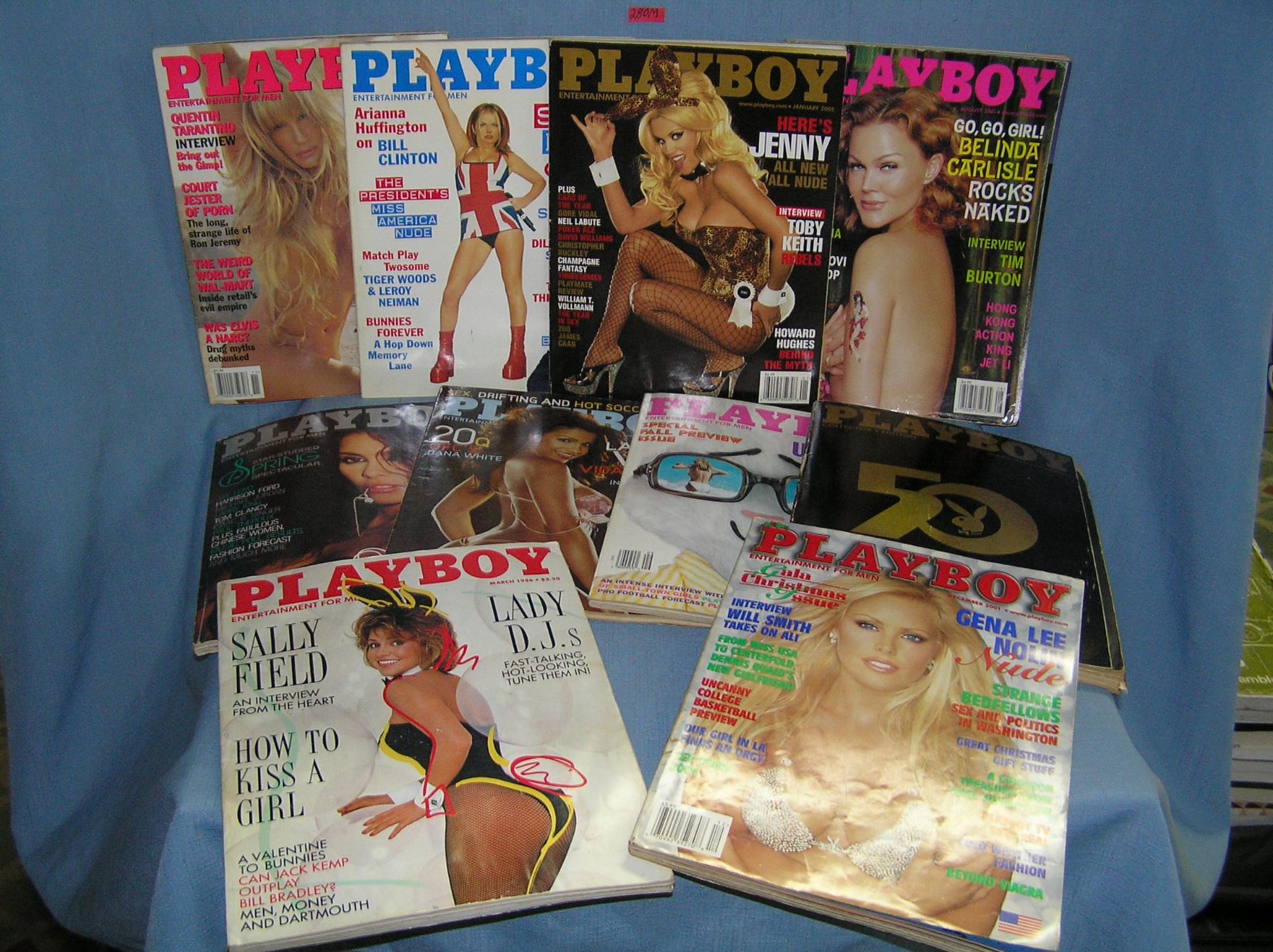 Collection of vintage Playboy magazines all super model issues includes Jenny McCarthy, Darryl Hannah, Ginger Spice, Belinda Carlisle, Vanity, Gena Lee Nolin, Sally Field, Uma Thurman, Vida Guerra, and 50th anniversary issue est. value $275.00-$325.00