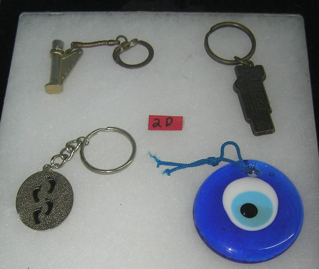 Collection of vintage key chains one is shaped like a harp with a perfume dabber est. value $30.00-$35.00