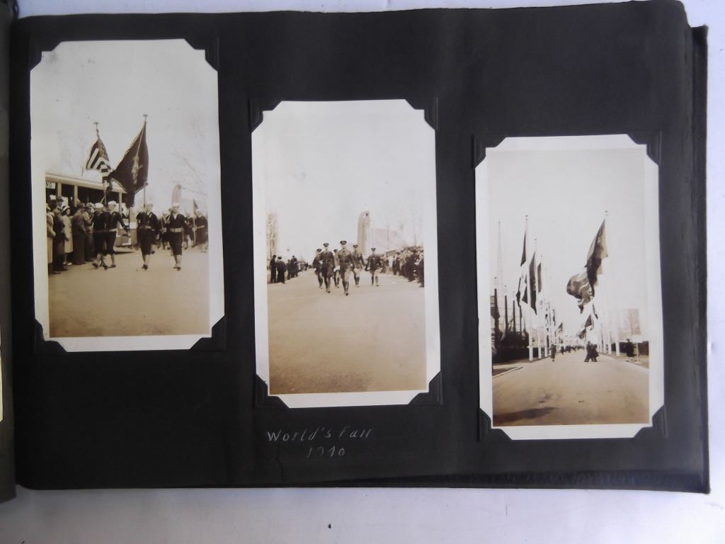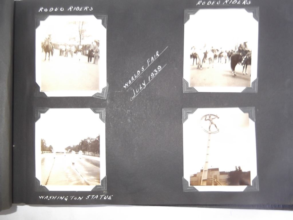 Collection of vintage vacation photos. Photos include military; 1939 & 1940 World's fair; oil well. Album not complete; several pages not attached to album.