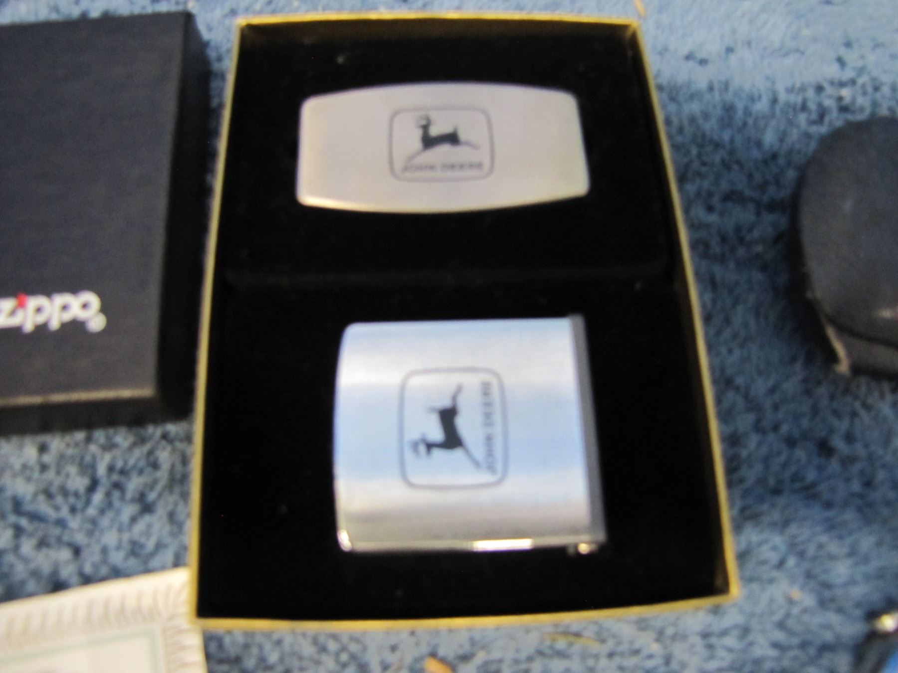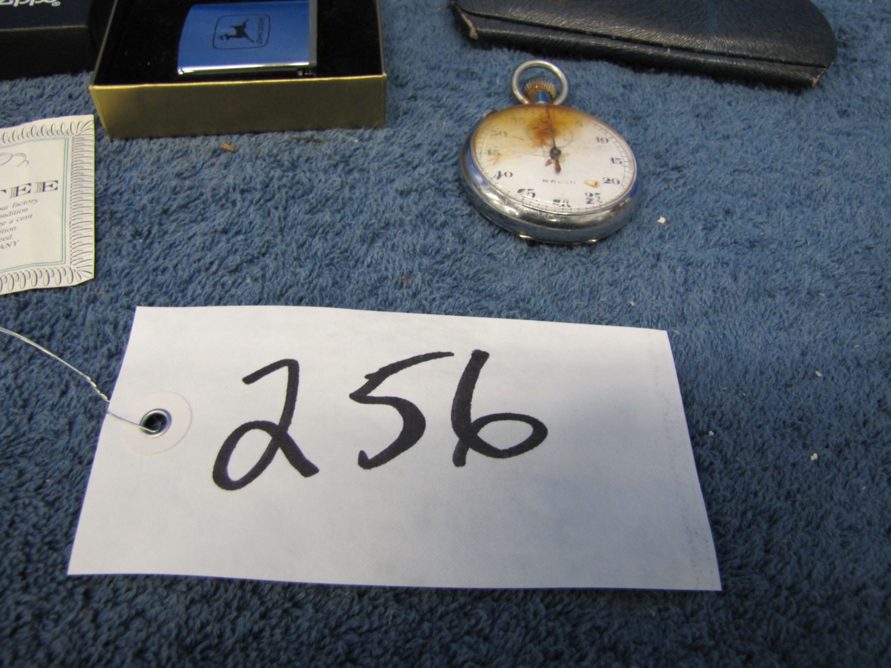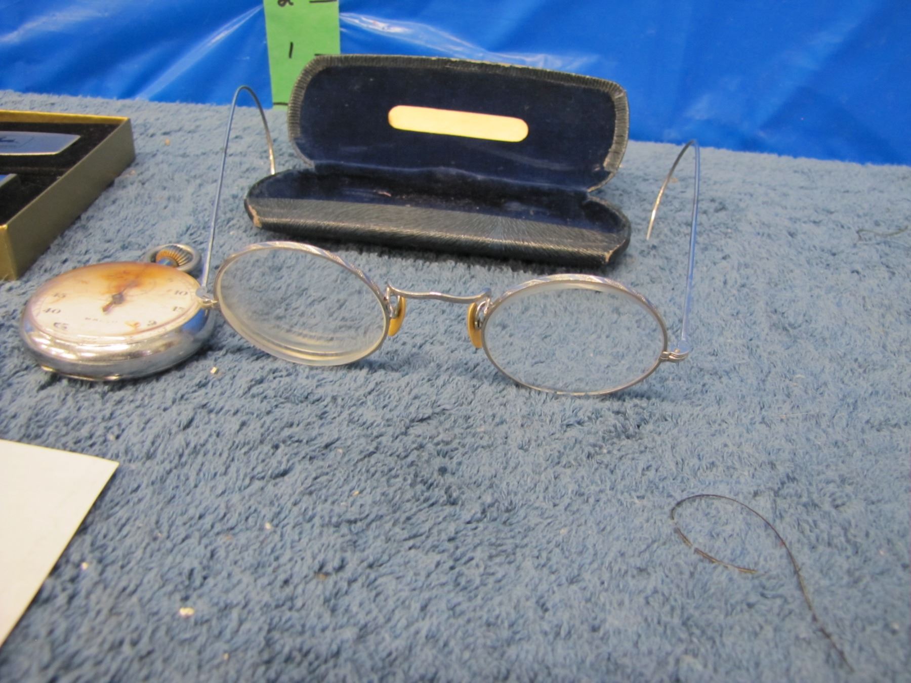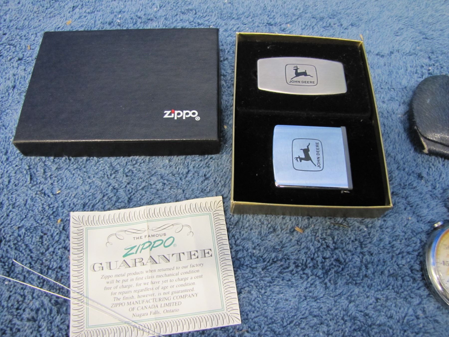 Collection with the John Deere zippo lighter , stop watch - not working and vintage eyeglasses