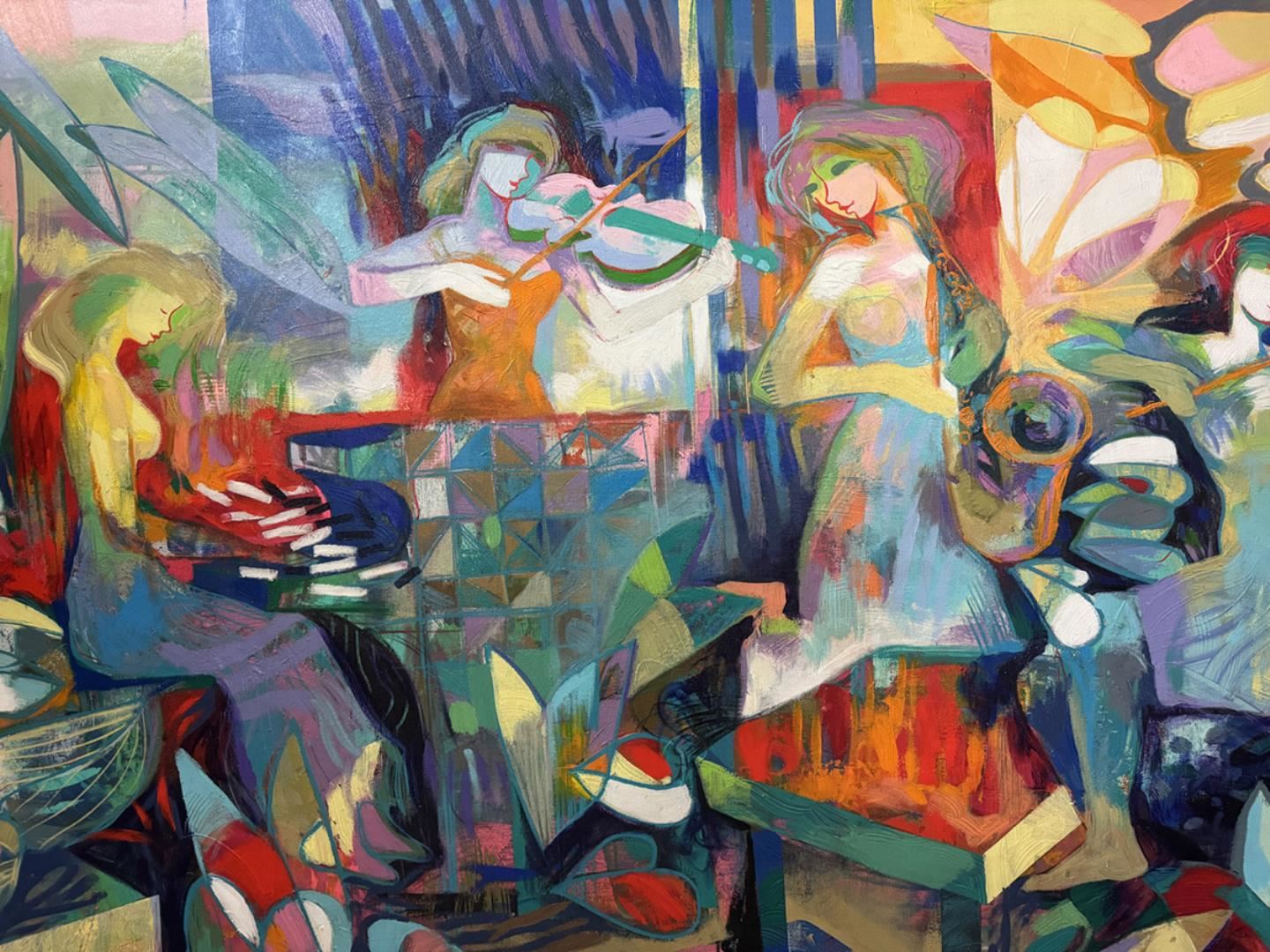 Stunningly beautiful original 79x48" acrylic on canvas, hand signed by Artist. This artwork comes rolled in a tube for east shipping.