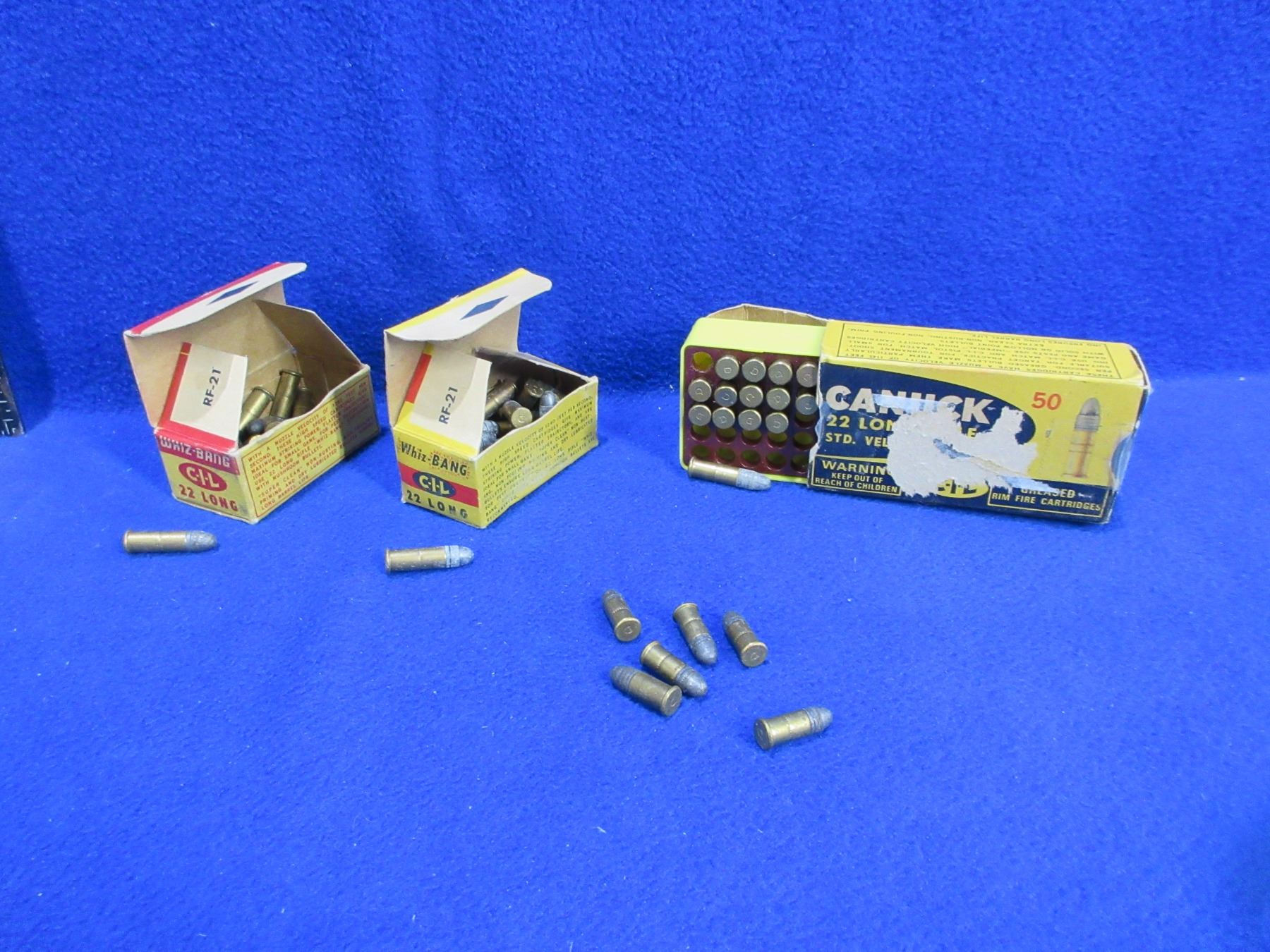 Collector Ammo - 22 Short, 22 Long and 22 LR Cartridges - Box of 26 and Box of 16 (22 Long Whiz Bang CIL), Box of 18 (22 LR Canuck CIL), Bag of 6 (22 Short)- 1 Whiz-Bang and Canuck Box are Damaged - PICK UP ONLY