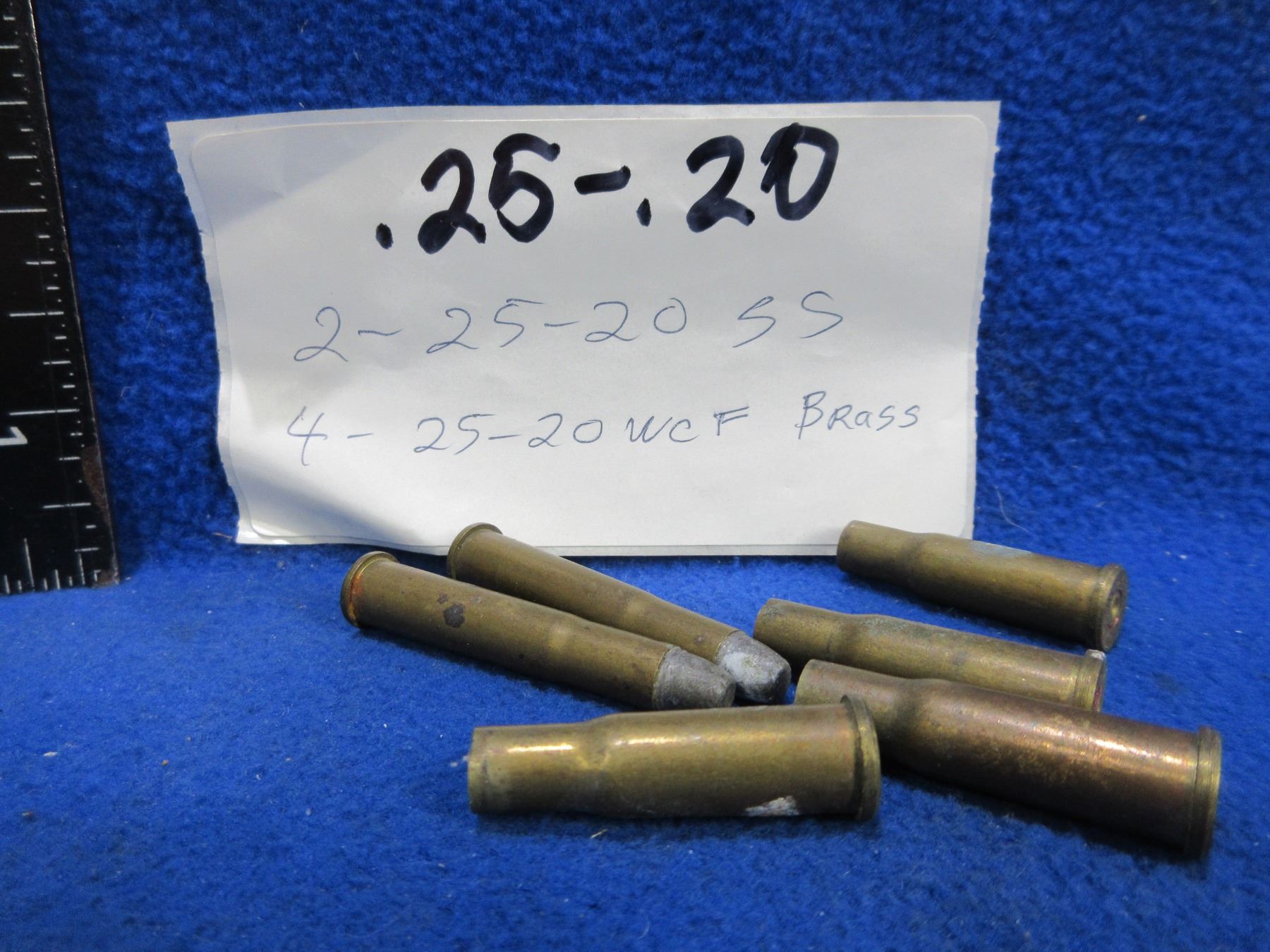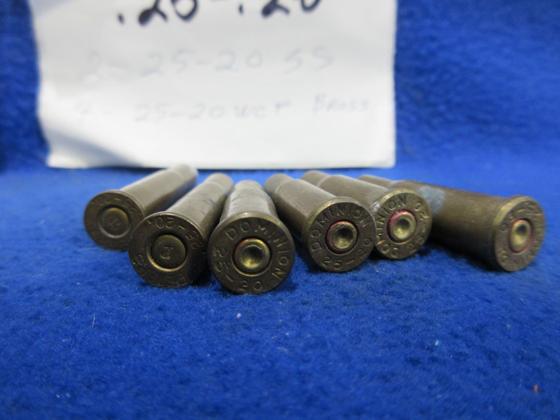 Collector Ammo - 25-20 SS Cartridges x 2, 25-20 WCF Brass x 4 (Pick Up or Ship by UPS Only) - Single Shot Cartridges are Peters, WCF Brass are Dominion