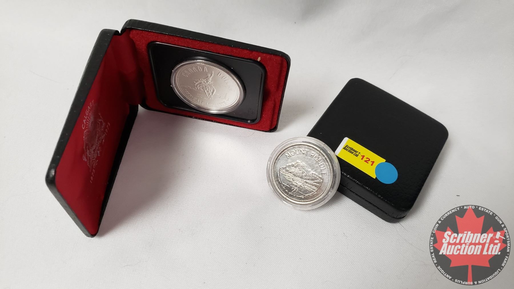 Collector Combo: Canada Dollar 1875-1975 Calgary - Black Case & Mount Rundle Token 1988 Banff Springs