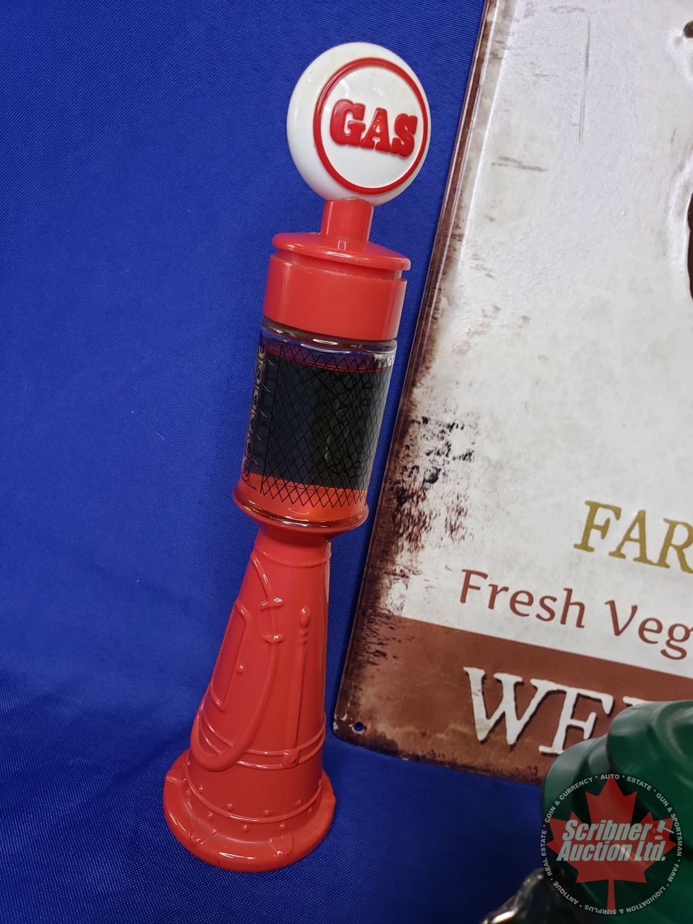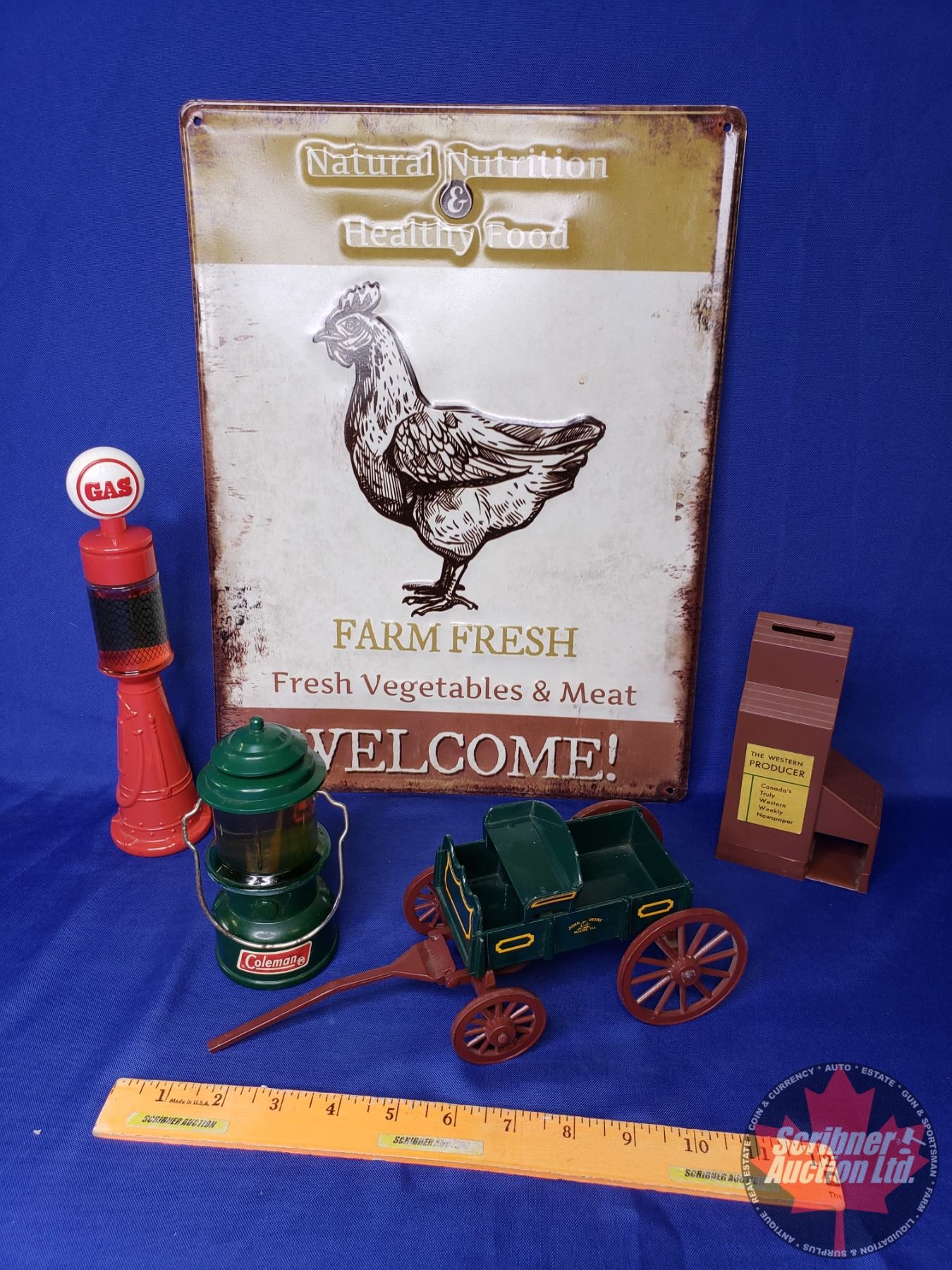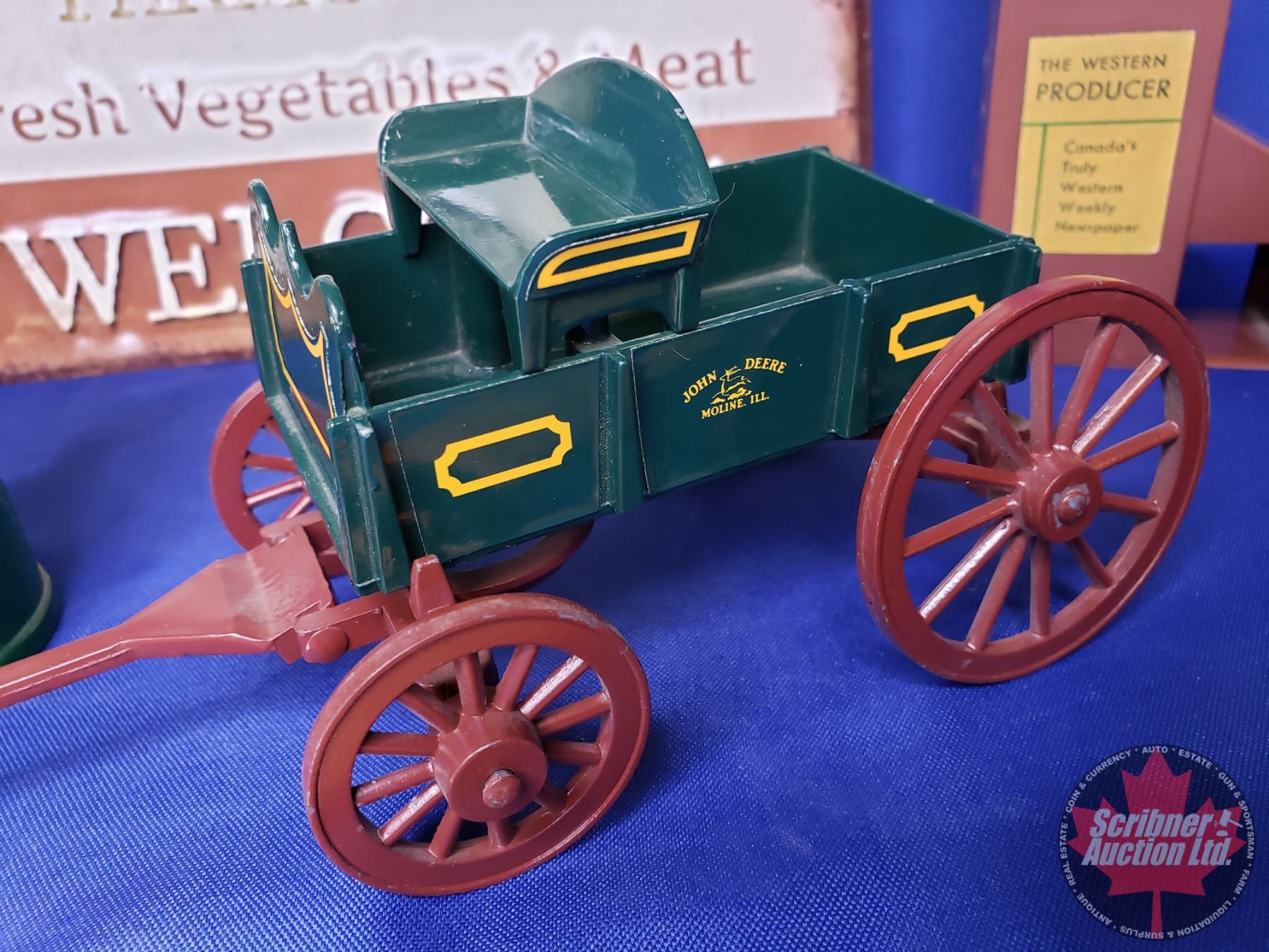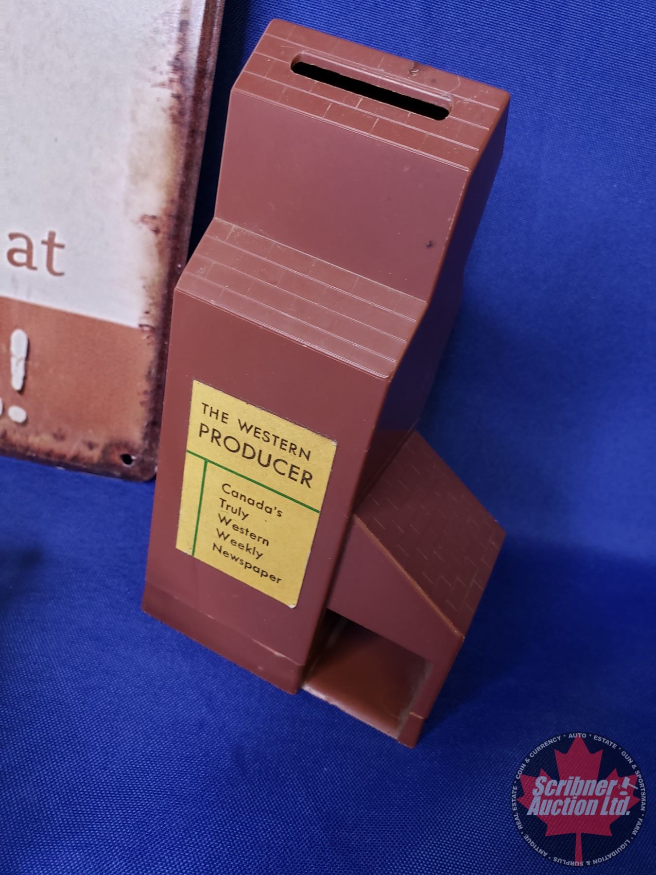Collector Combo: Single Side Tin Sign, Avon Aftershave, Buck Board Wagon, Western Producer Bank) (Sign Measures: 16"H x 12"W) (SEE PICS!)