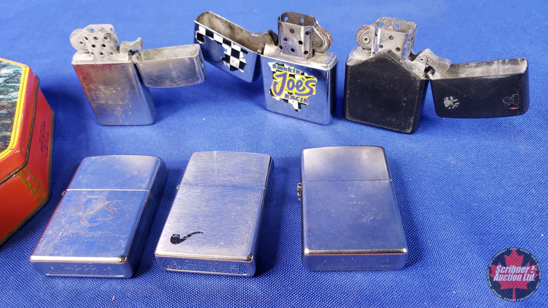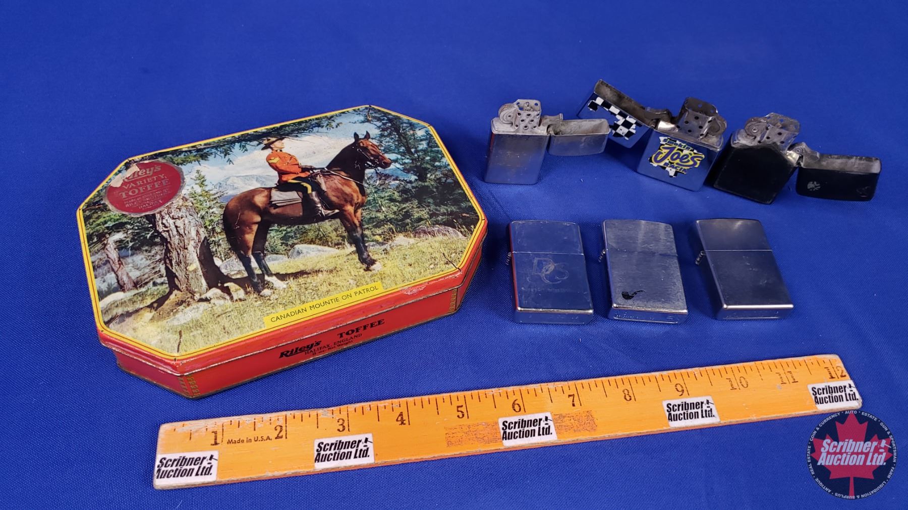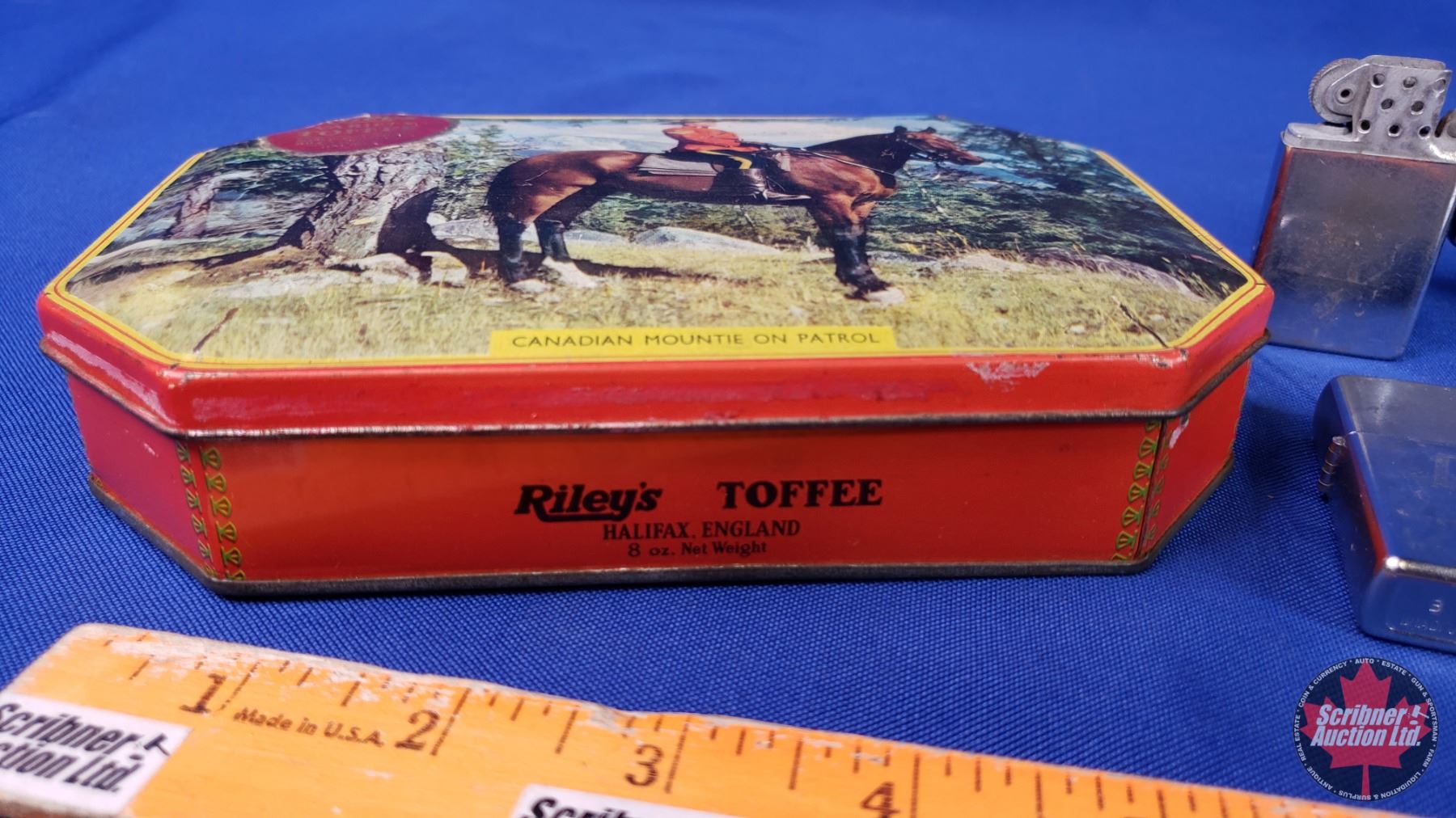 Collector Combo: Zippo Lighters & Riley's Toffee Tin (Tin Measures: 1-1/4"H x 7"W x 4-3/4"D) (SEE PICS!)