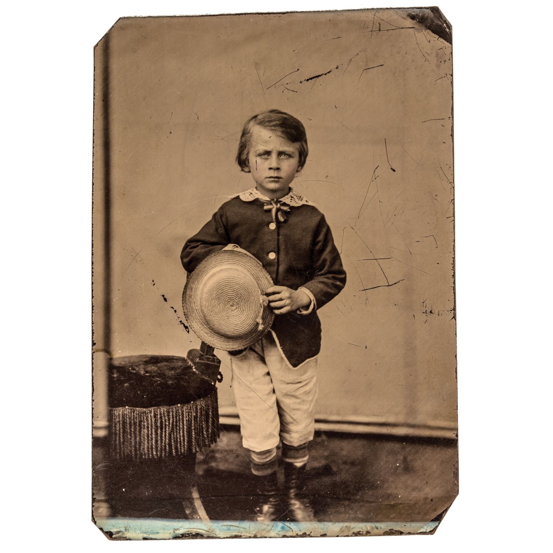 8. Tintype of family in paper holder, stamp of B.W. Armiger