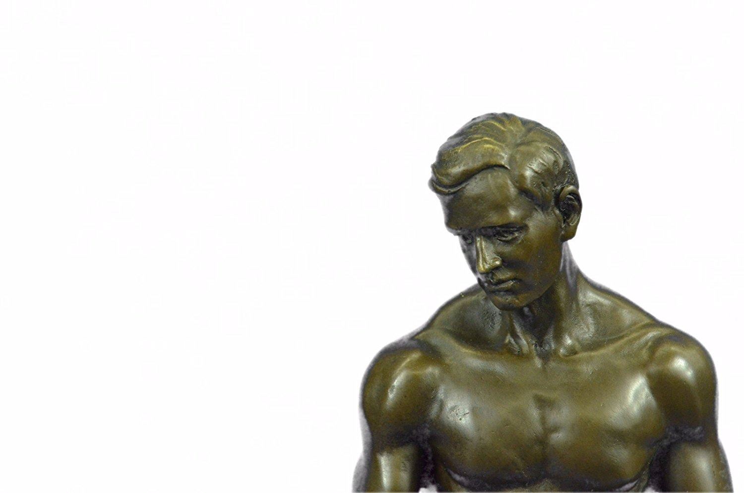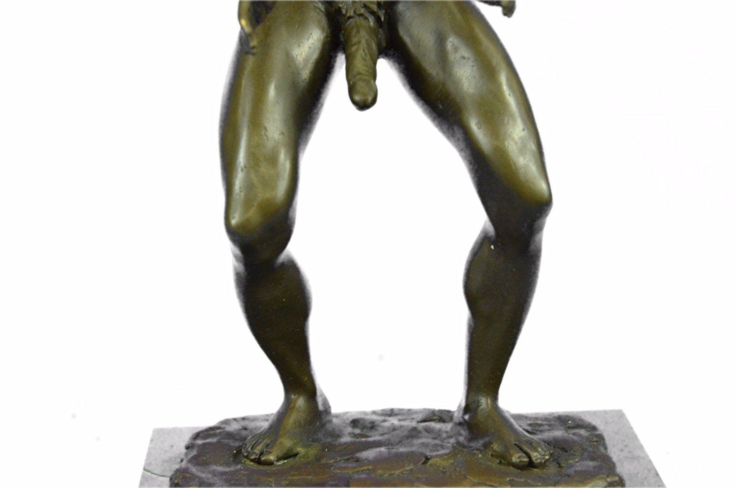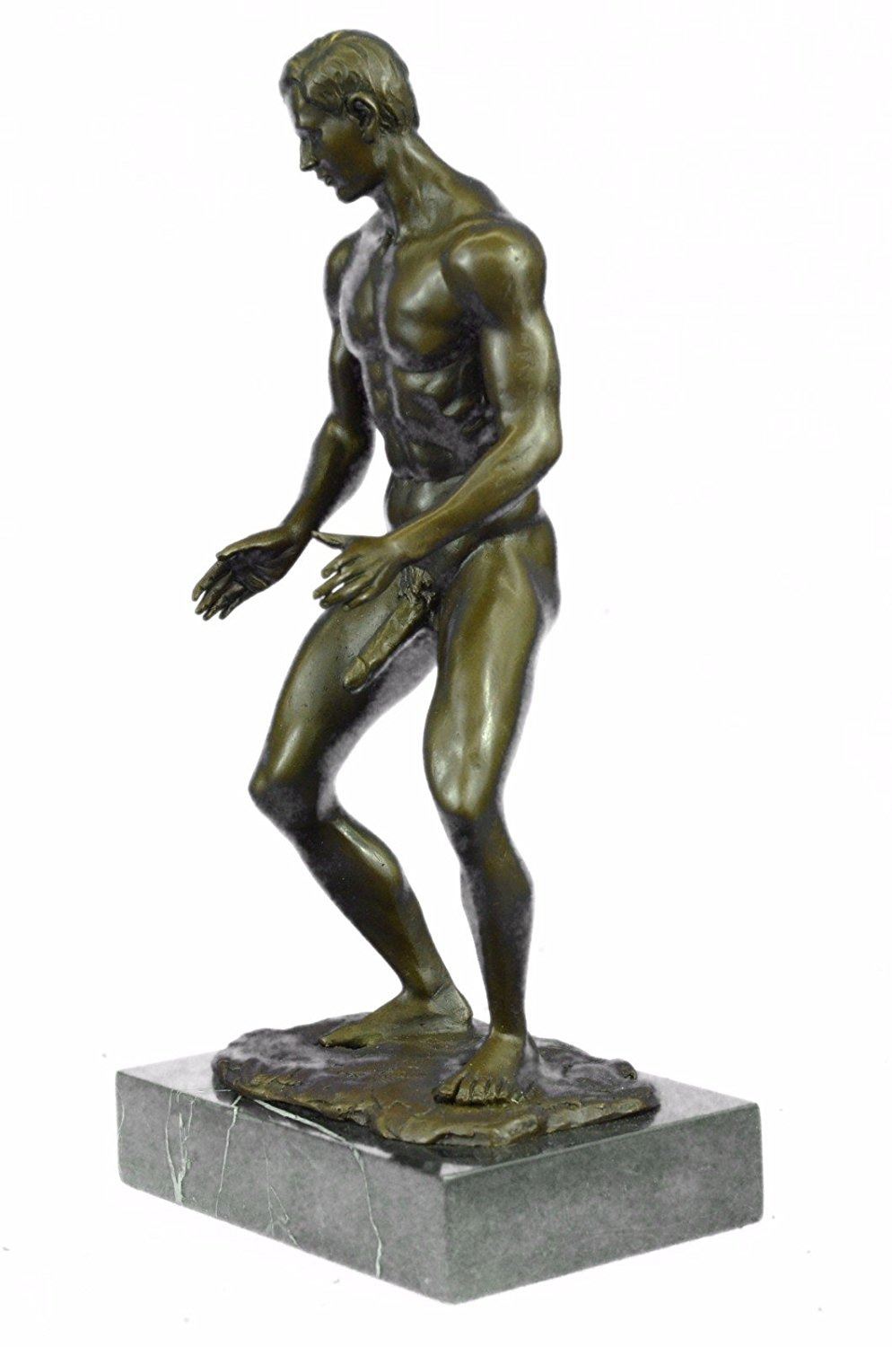 He boldly stands in the buff with a look of fearless determination.This proud gay man stretches his muscular arms in front of him and poses for his admirers. Proving he knows no shame he showcases how well endowed he is, which is Just one example of his gorgeous body. He is a lean and muscular model. Take a gander at his chiseled torso and chest. Please try not to faint. He would be right at home at New York's Chippendale's and would drive all the guys and dolls mad with desire. This confident stud was cast using the Lost Wax Method. 100% handmade bronze and carefully detailed this is a priceless unlimited edition piece of work. Bronze Dimensions with Marble Base: Height 12 X Width 6 inches. Weight: 7 LBS. Inventory: 63ST855036