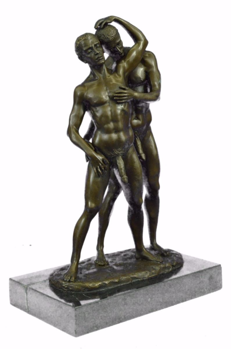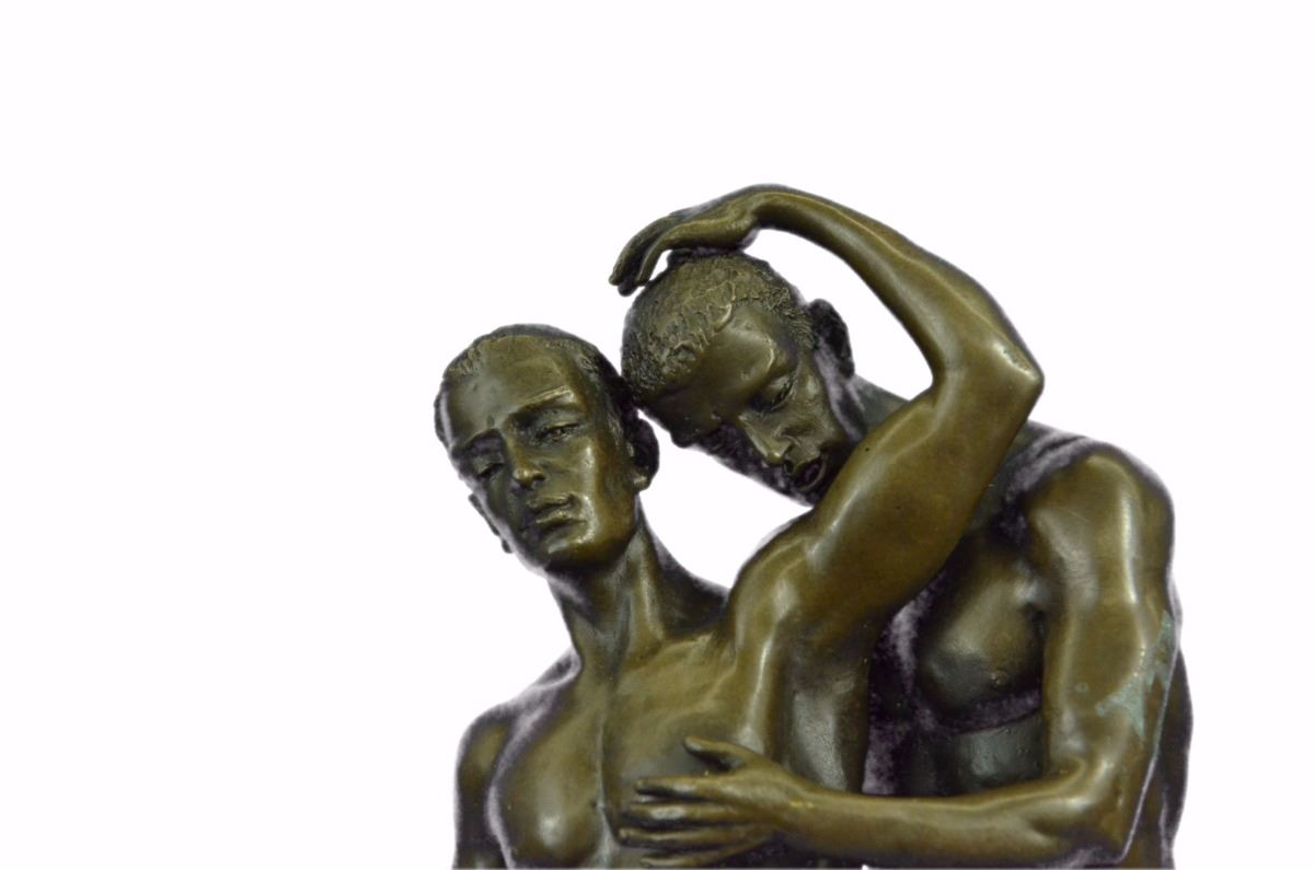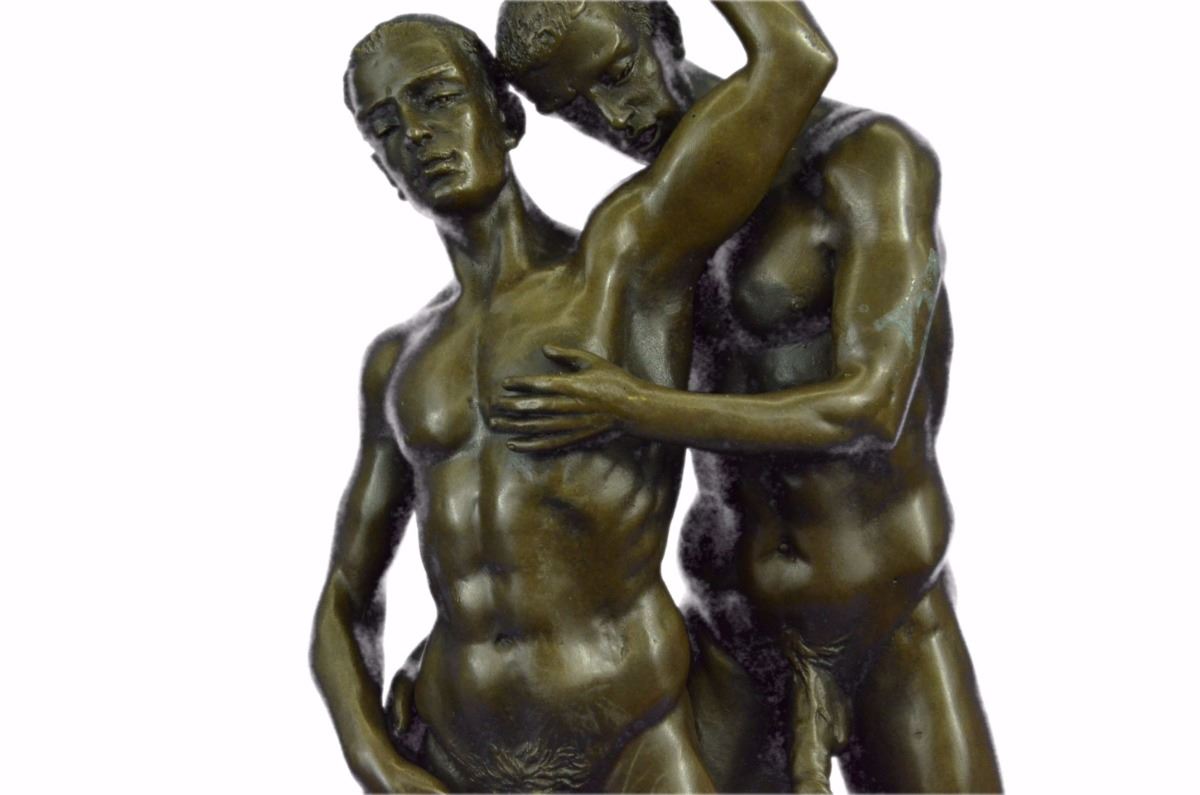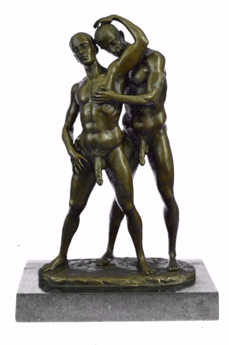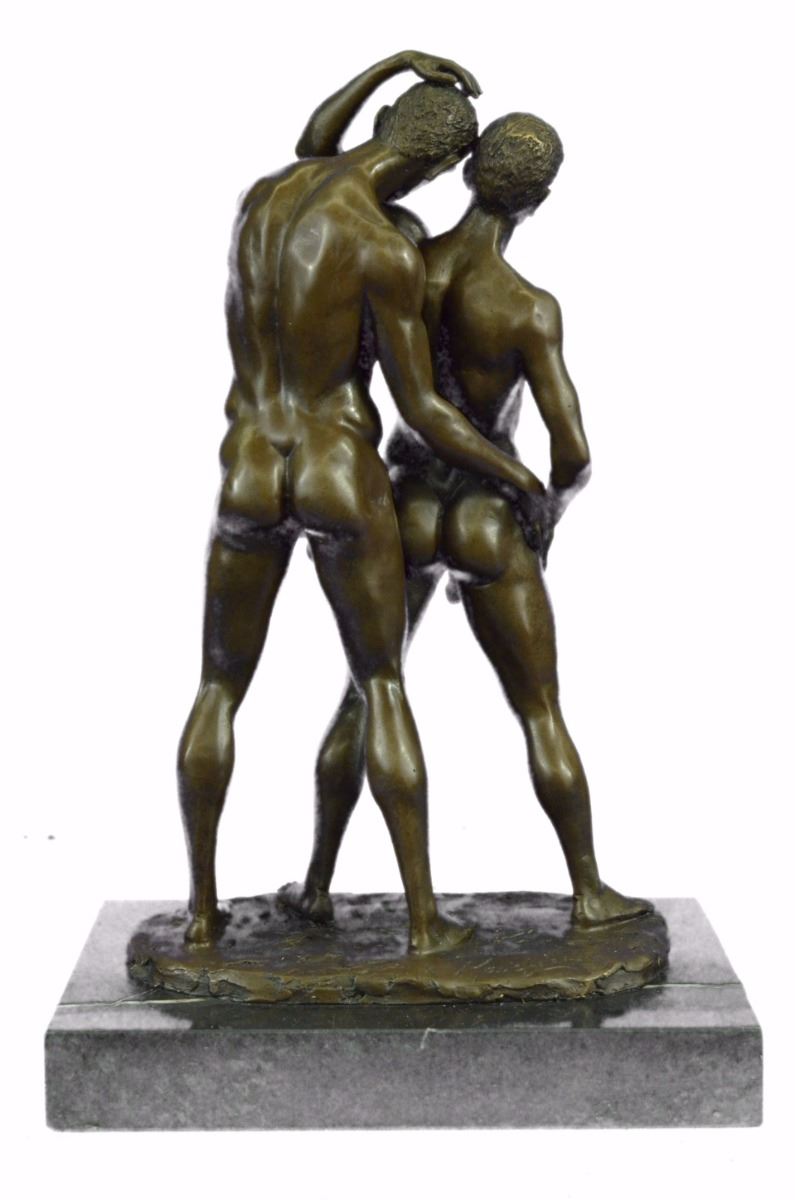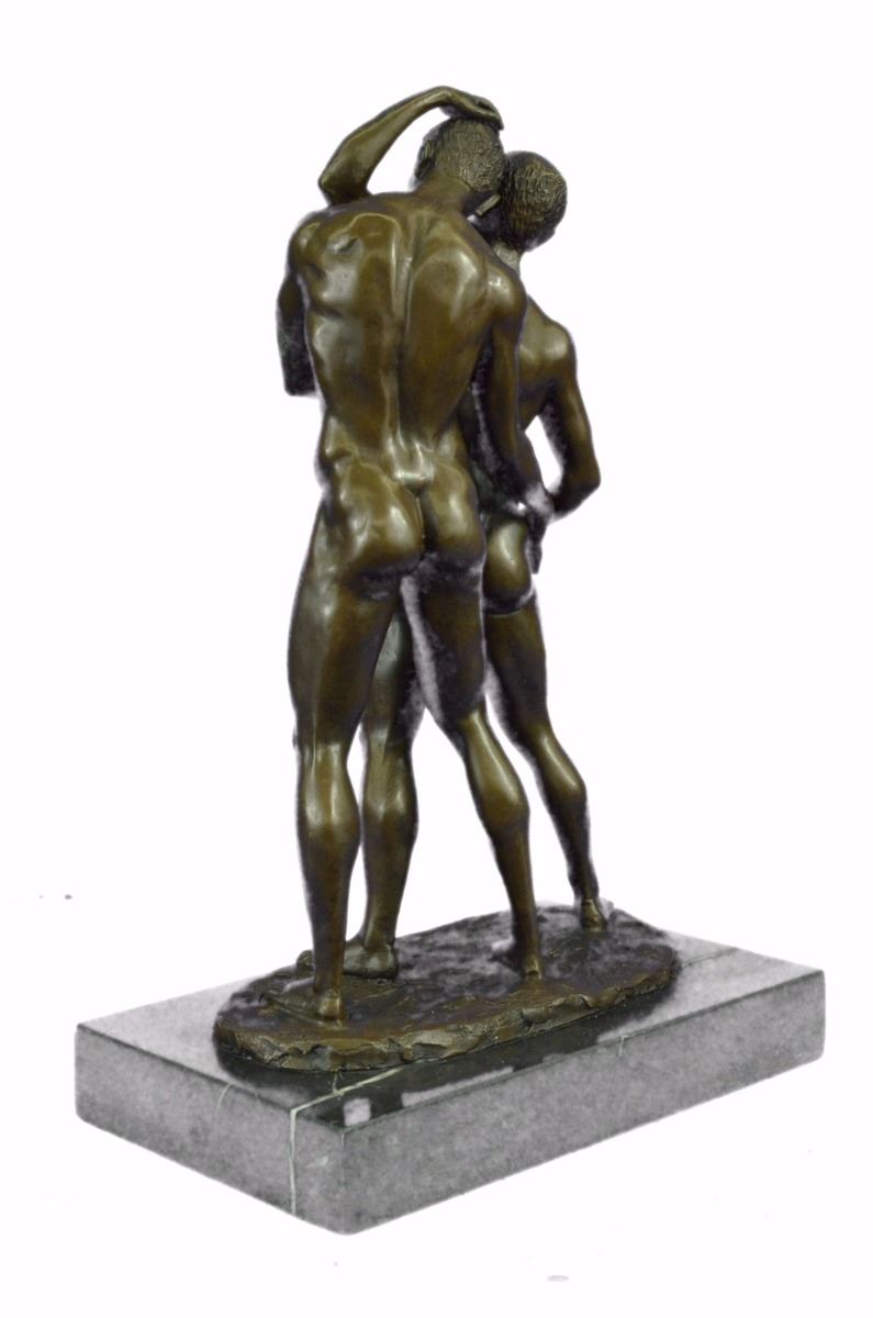 This Gay Sculpture Of Two Men Engaging In A Flirtatious Hug Explain The Meaning Of Gay In Itself, Carefree Spirits. They Seem To Be Enjoying Each Others Companies And Don'T Care What Others Have To Say Or Think. Life Is About Freedom And That'S How They Live There Life So Why Not Express It Through The Love They Have For Their Own Gender. Sharing Their Love For One Another Is All They Cherish And Want To Do Without Being Criticize So This Sculpture Represents Just That. This Is A Beautifully Detailed Sculpture And Depicts The Way Of Homosexual Life As It Is. This Sculpture Was Cast Using The “Lost Wax Method” And Is Signed By Artist Mavchi. Bronze Dimensions With Marble Base:Height 13" X Width 8.5" Marble Dimensions: 8.5" X 5" Height Without Base: 12" Weight : 14 Lbs.