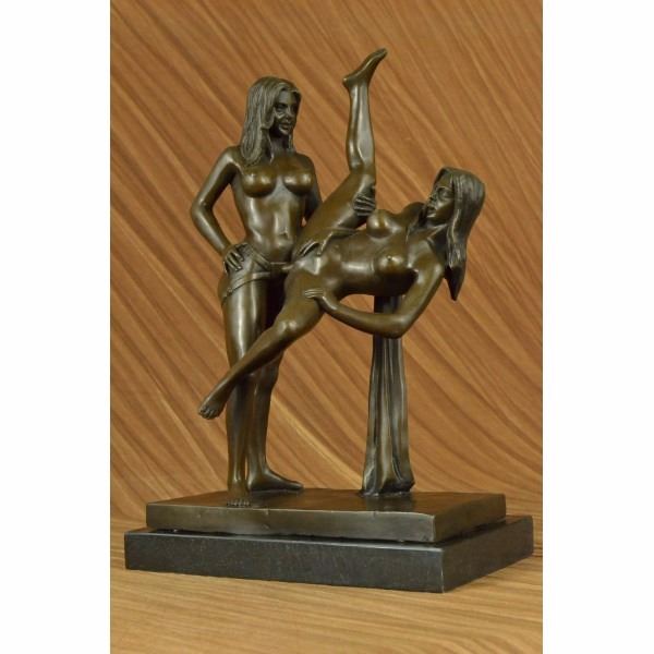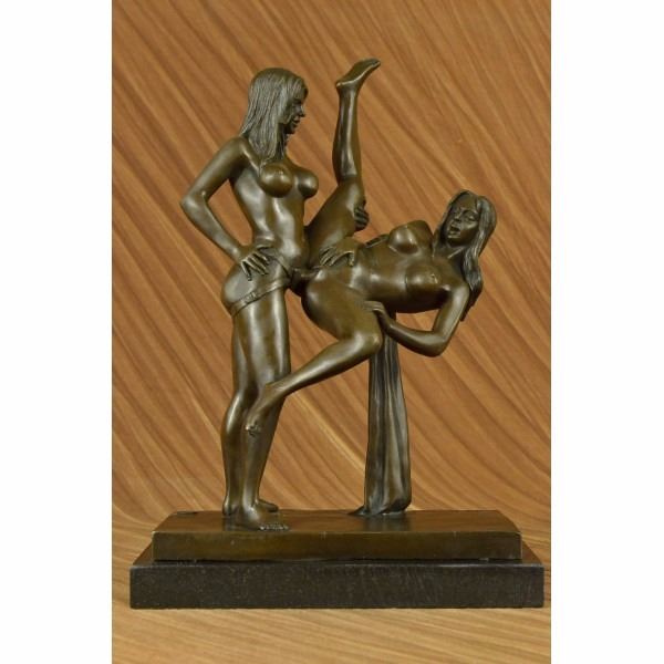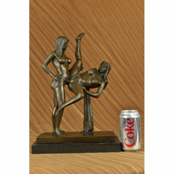 This is a Collector edition bronze sculpture featuring two gorgeous woman in a moment of sexual ecstasy . Her eyes are closed as she driving her sexual partner crazy. Waves of her hair twist and shape to the base of the piece. these sculptures have been hand crafted and signed by artist J.Mavchi. Very unique in design this work of art embraces a women's choice of sexuality and pleasure. All of our bronze sculptures are hand crafted through the lost wax process, not be mistaken for cheap resin. Condition: This sculpture is in perfect condition. Bronze Dimensions with Marble Base:Height 15" x Width 10 1/2" Marble Dimensions:10 1/2" X 6 " Height without base: 14" Weight : 20 LBS Inventory : 35DS5708953