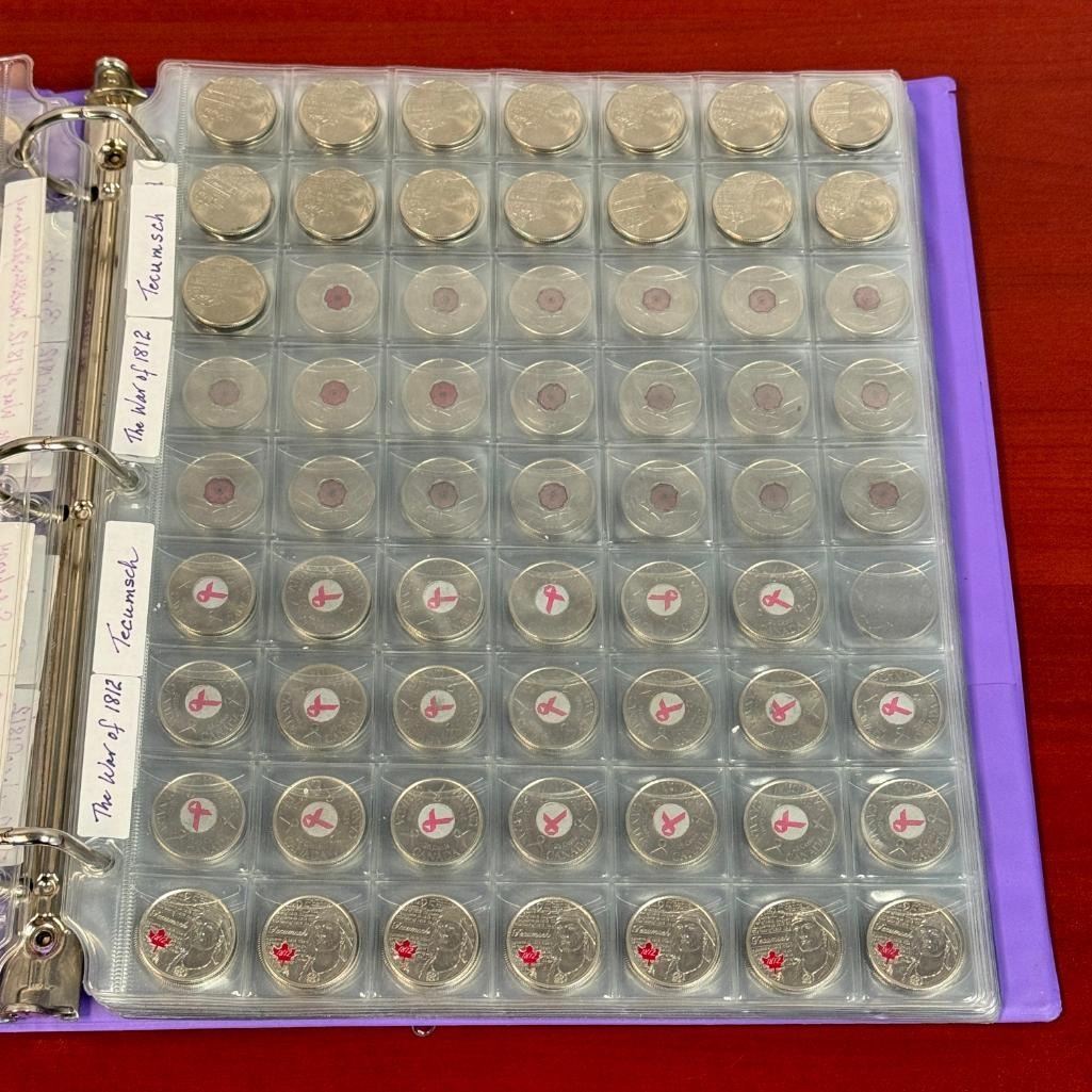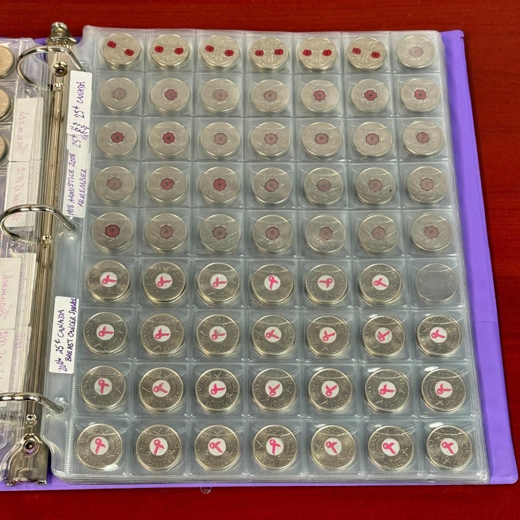 Collector Estate Canada 25c Collection. Approximately $120.00 Face. Mixed Dates. War of 1812, Breast Cancer, Armistice, 2005, Bravery, 2011, 2013, 2002, Arctic Expedition, 2004, Stanley Cup.