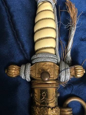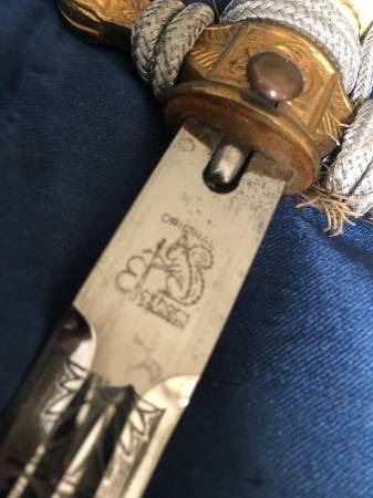 This 2nd Model Naval Dagger was probably purchased by a high ranking officer early in the period as the pommel is a 1938 changeover type