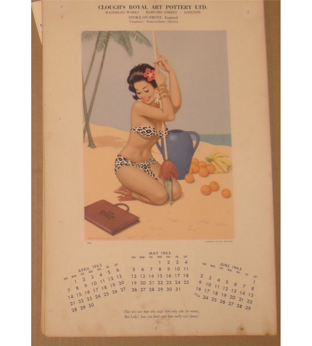 Sense of humour is this one pin-up girl image (you discovered the secret message ? !!! ); 1963 unframed pin-up girl very old one; you can use it as is, or frame it; lovely great colours with palm tree, a delightful older image on yellowing about 14 high x 9 plus inches paper like an American "Hawaiian" (???) Native American for a quick vacation story fantacy art; great for man cave; drawer, wall, or secret area or gift for ladies' too as tasteful composition; you may consider to combine this one item with others during the next Saturdays January and February AOAV-Attics auctions to save even more; great for your collections or start one, or as a gift !!!