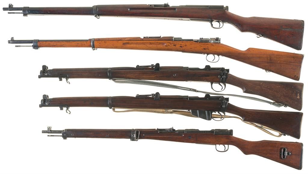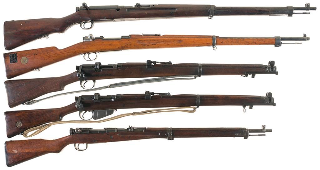 Collector's Lot of Five European Military Bolt Action Long Guns -A) School Use Nagoya Type 38 Rifle