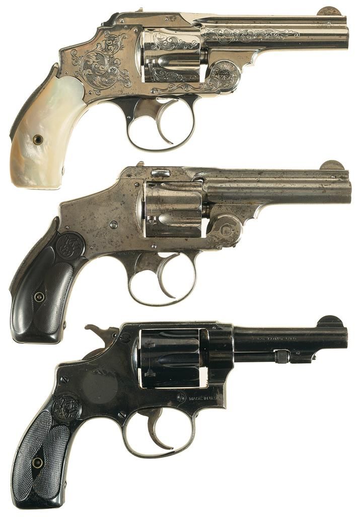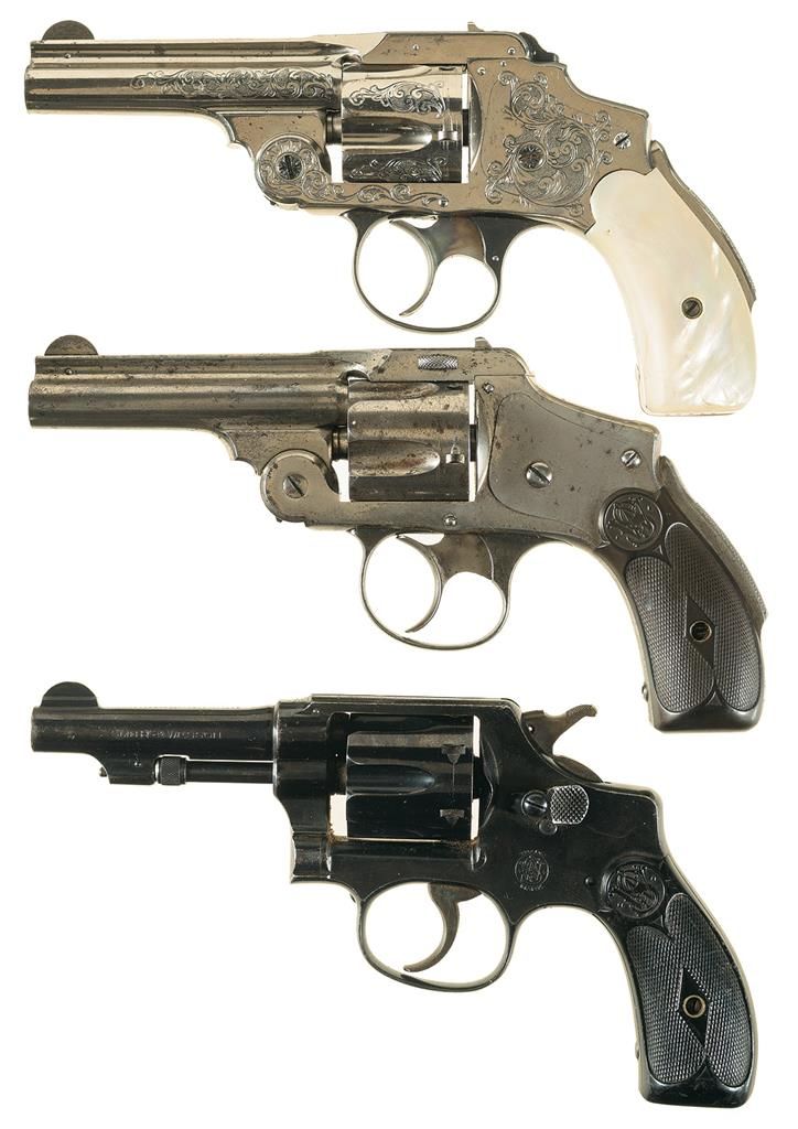 Collector's Lot of Three Double Action Smith & Wesson Revolvers -A) Engraved Smith & Wesson 38 Safety Hammerless 3rd Model Revolver with Pearl Grips