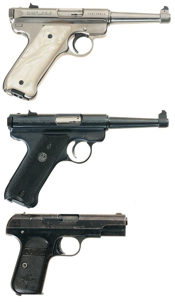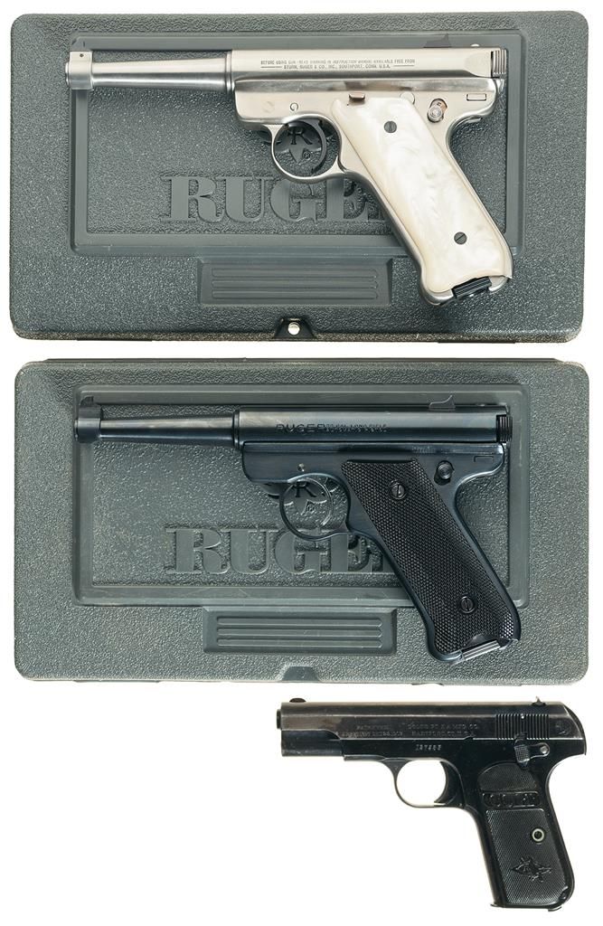 Collector's Lot of Three Semi-Automatic Pistols -A) Stainless Ruger MK II Pistol with Case