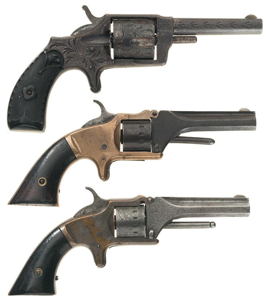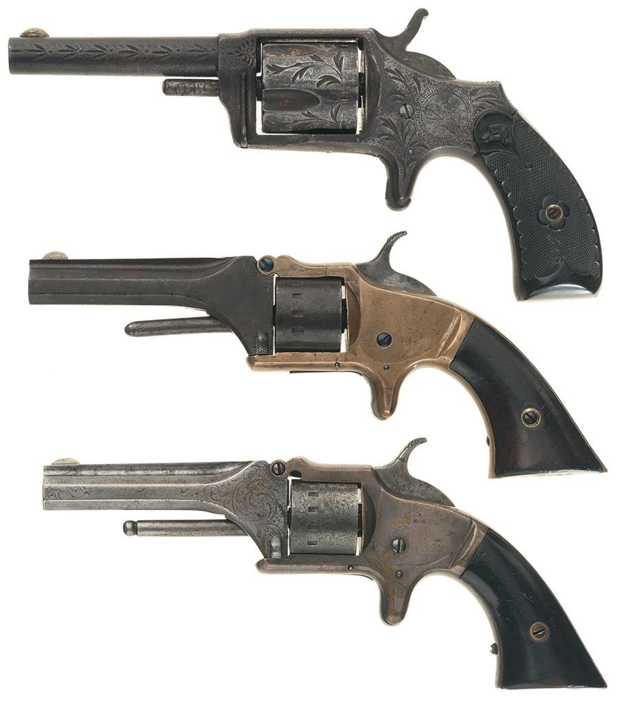 Collector's Lot of Three Spur Trigger Pocket Revolvers -A) Engraved Hopkins & Allen Blue Jacket No.