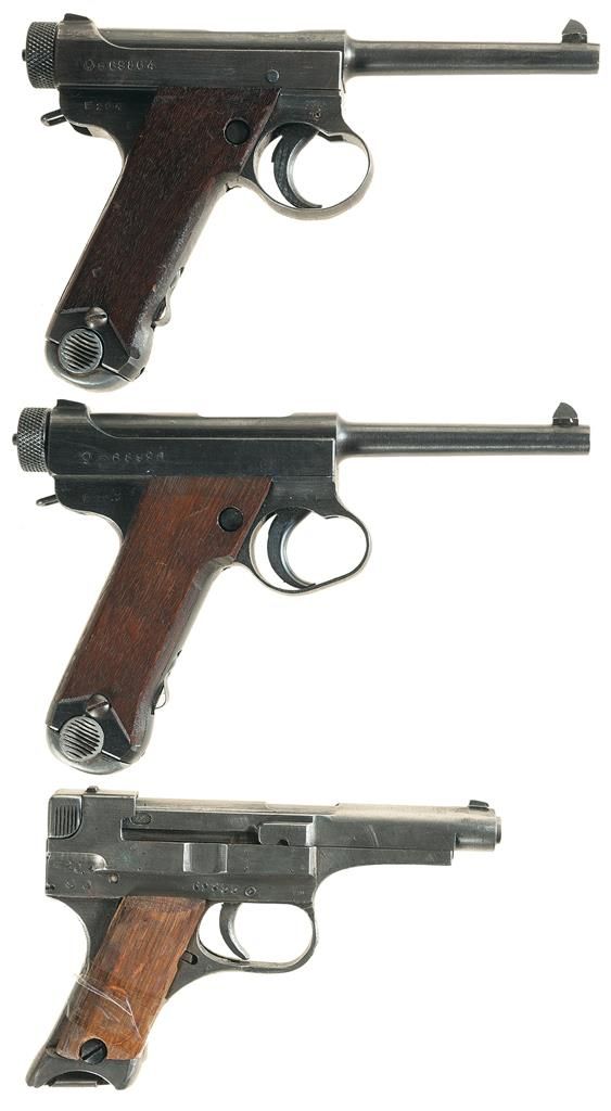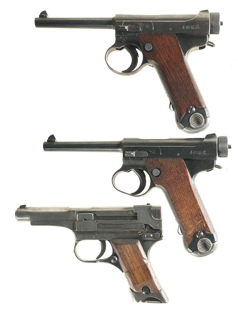 Collector's Lot of Three World War II Japanese Semi-Automatic Pistols -A) Japanese Type 14 Pistol with Other Items