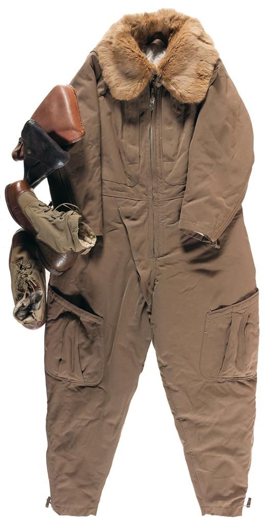 A) Dated April 1945 with matching magazine. With winter type flight suit, 2 holsters, pair of Japanese boots.