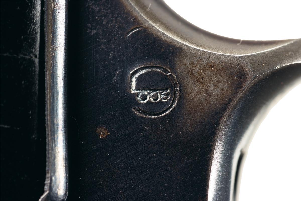 Condition: Excellent. The slide retains 97% original blue finish with some scatted minor edge wear. The frame retains 97% blue finish with a faint plum patina and the grip straps thinning to a gray patina. The slightly faded grips are very fine with the exception of a few minor handling marks. Mechanically excellent. A rare Nazi pistol.