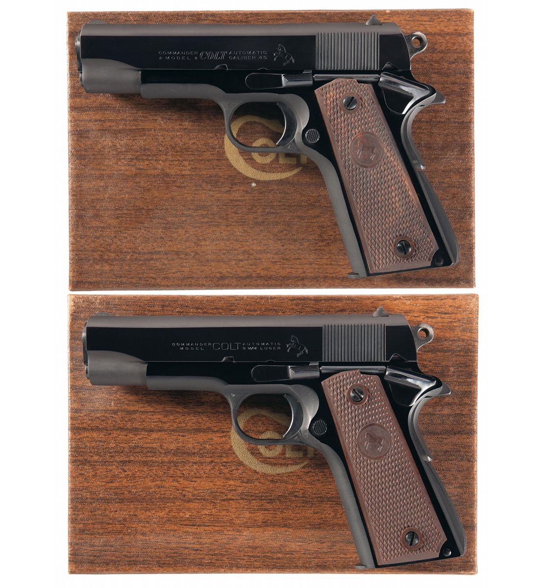 - B) Manufactured in 1966. Standard markings and checkered Rampant Colt grips. With box numbered to gun and manual.