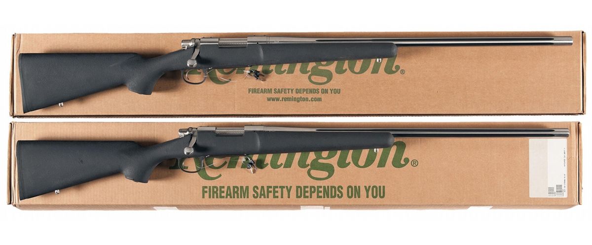 A) Introduced in 2000, the EtronX system used a combined electric solenoid trigger and electric primer ignition system to deliver a 27 microsecond lock time. Produced without sights on the fluted barrel, receiver drilled and tapped for mounting, jeweled bolt and a combined safety switch alongside the tang with a keyed lockout in the grip. Mounted on a textured fiberglass stock with an indicator light on the wrist, sling studs and a rubber buttplate. With original box, papers, a presentation CD, 1 box of 1,000 No. 9 1/2 Large rifle electric primers and 1 box of 10 boxes of 20 .243 Win. 90gr Ballistic Tip electric ammunition (this ammunition is difficult to obtain).