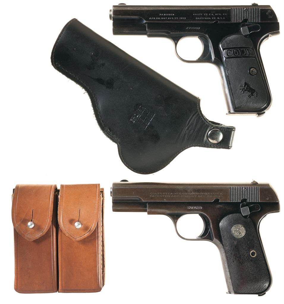 Collector's Lot of Two Colt Model 1903 Hammerless Semi-Automatic Pistols -A) Colt Model 1903 Hammerless Pistol with Accessories