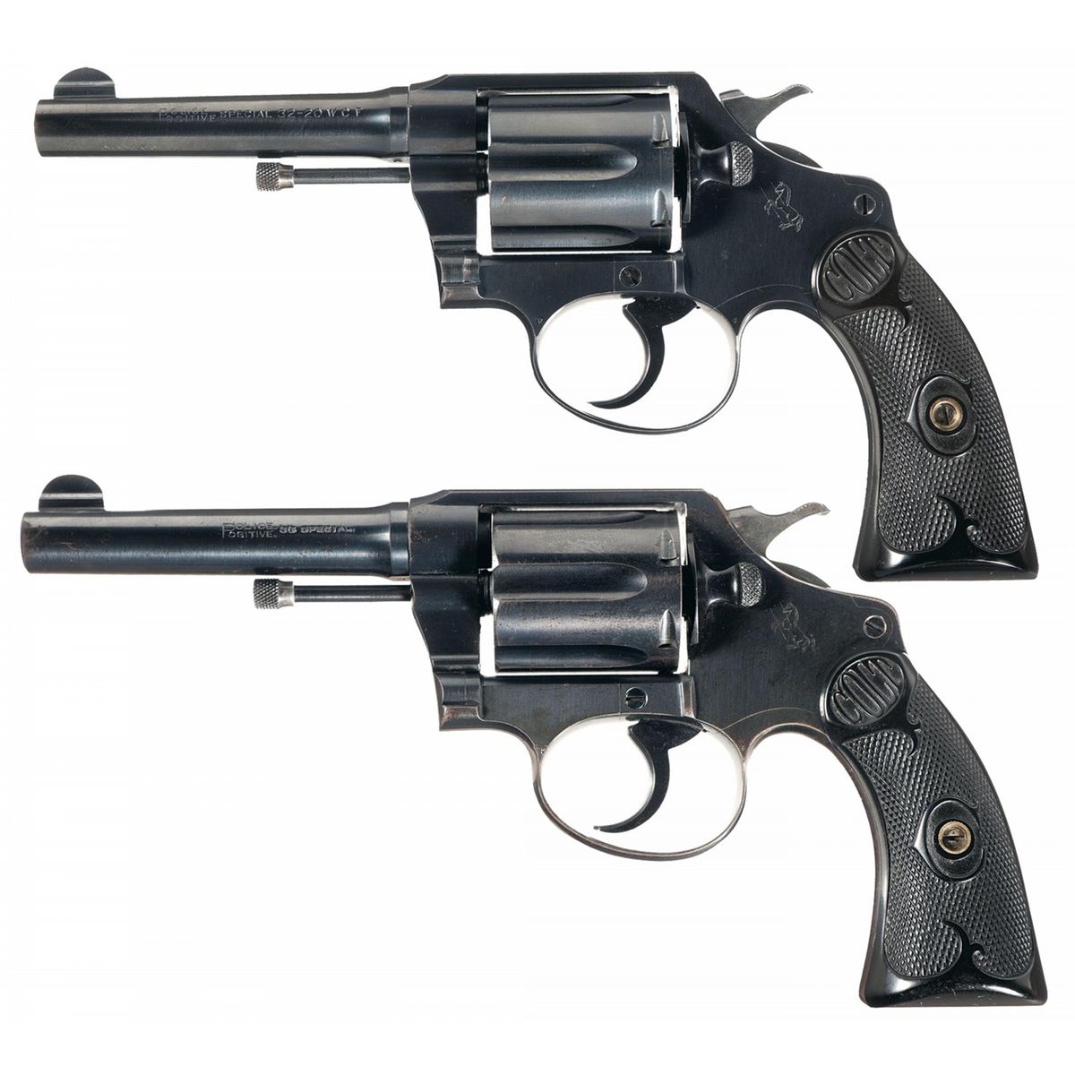 A) Manufactured in 1924 with a smooth trigger, checkered hammer, blade front and frame notch rear sights and fitted with checkered hard rubber grips with "COLT" at the top.