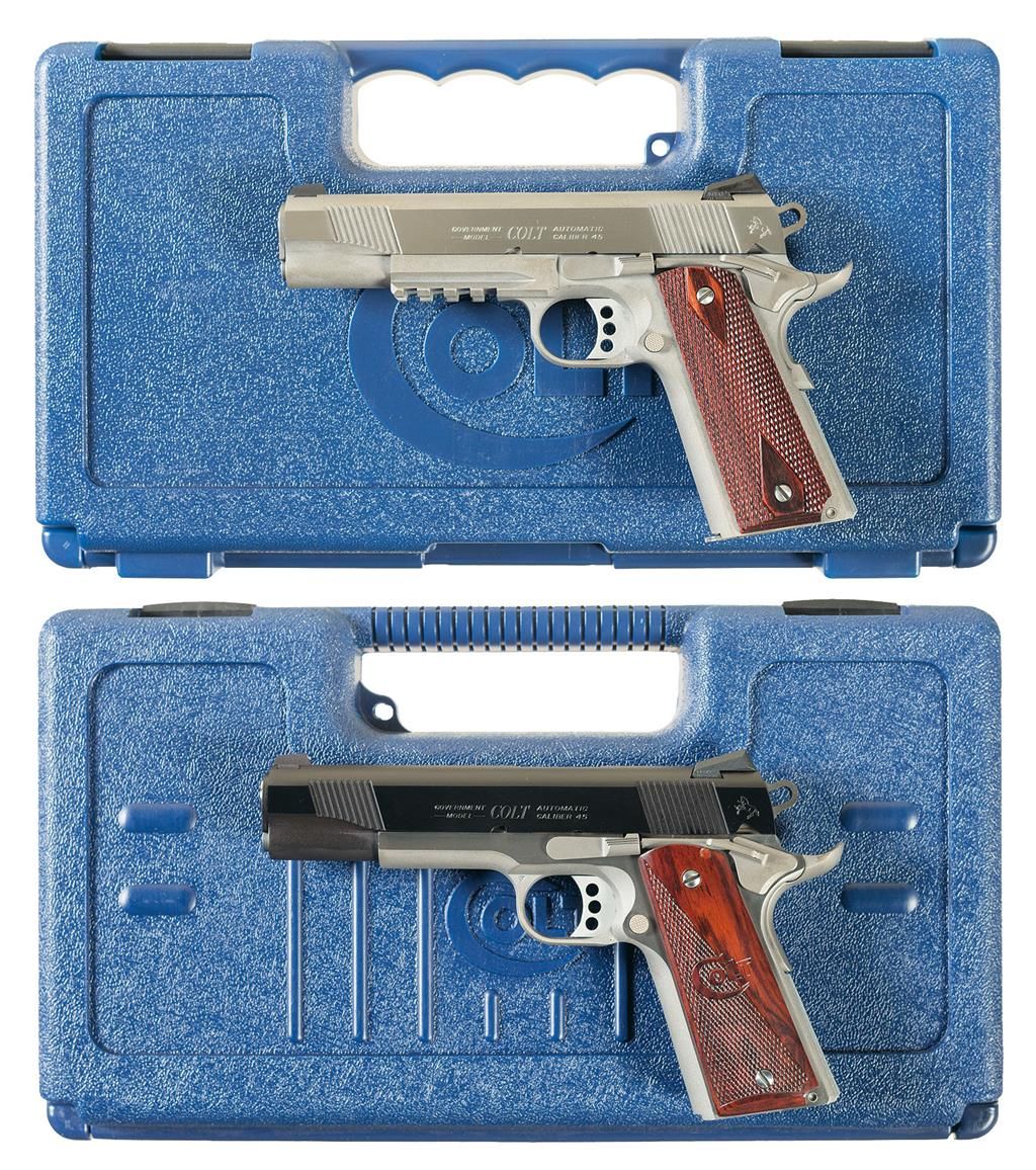 Collector's Lot of Two Colt Semi-Automatic Pistols with Cases -A) Colt Government Model Rail Gun Semi-Automatic Pistol