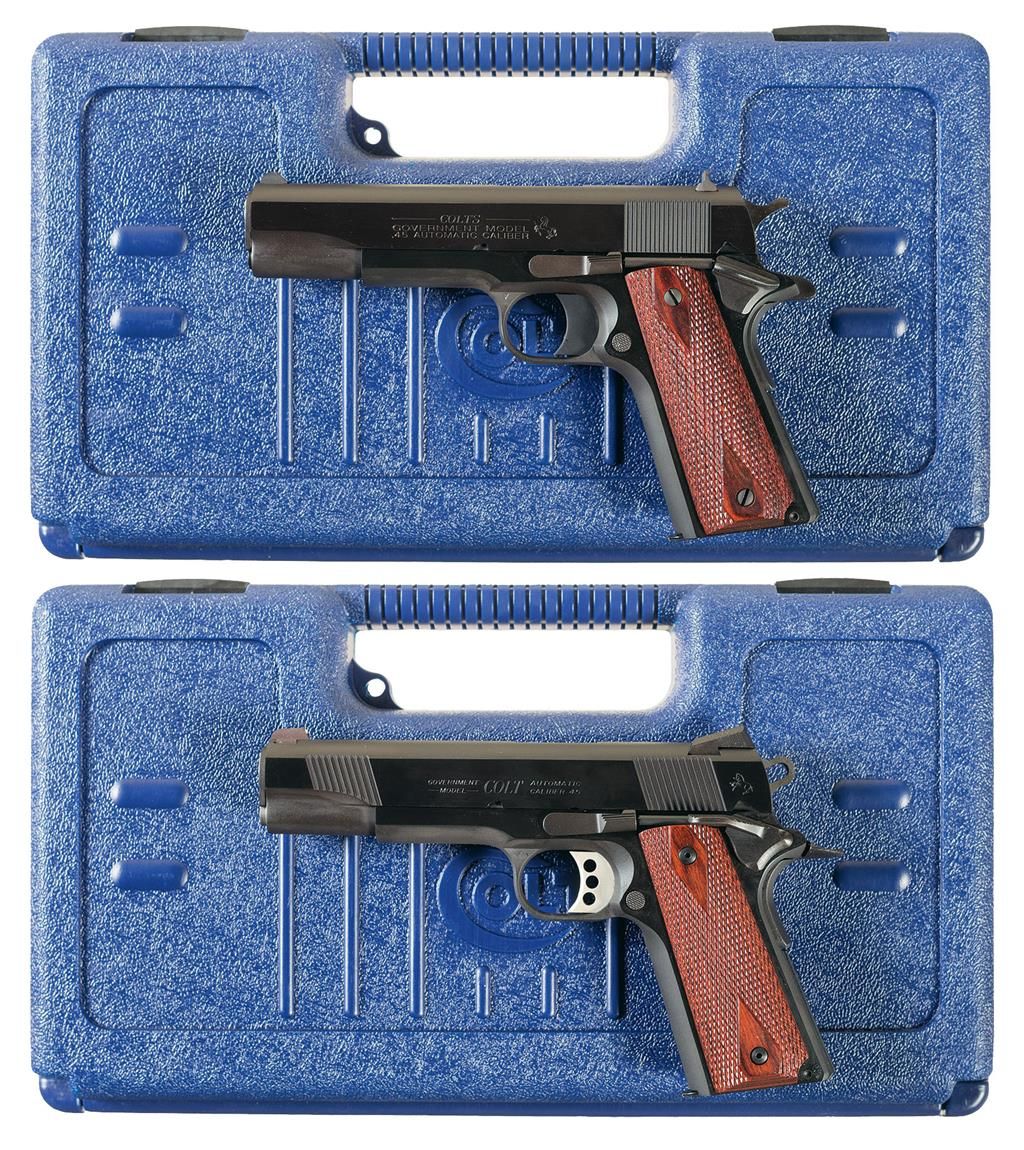 Collector's Lot of Two Colt Semi-Automatic Pistols with Cases -A) Colt Government Model Series 80 Semi-Automatic Pistol