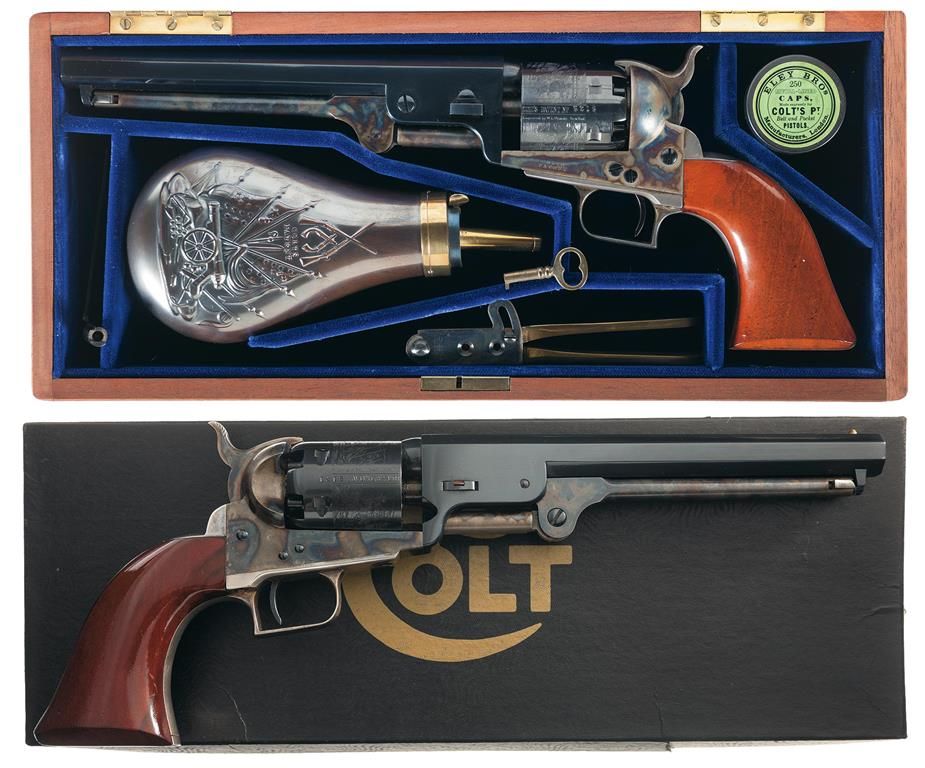 Collector's Lot of Two Early Colt Black Powder Series Revolvers with Original Flip Top Black Boxes -A) Cased Colt 1851 Navy Revolver with Accessories