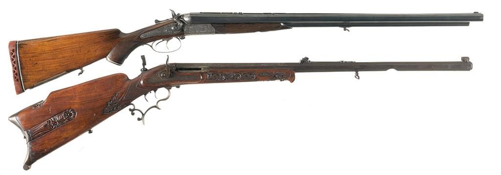 Collector's Lot of Two German Long Guns -A) Unmarked and Engraved Back Action Hammer Drilling