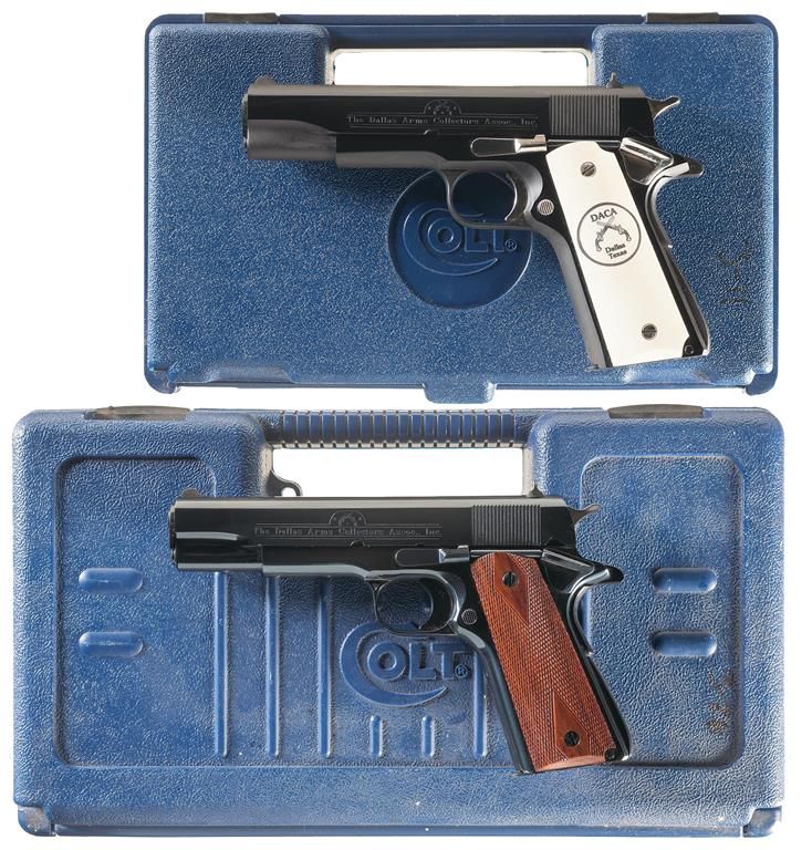 Collector's Lot of Two Matching Serial Numbered Colt Government Model "The Dallas Arms Collectors Assoc., Inc." Commemorative Semi-Automatic Pistols with Cases -A) Colt Government Model Semi-Automatic Pistol with Ivory Grips