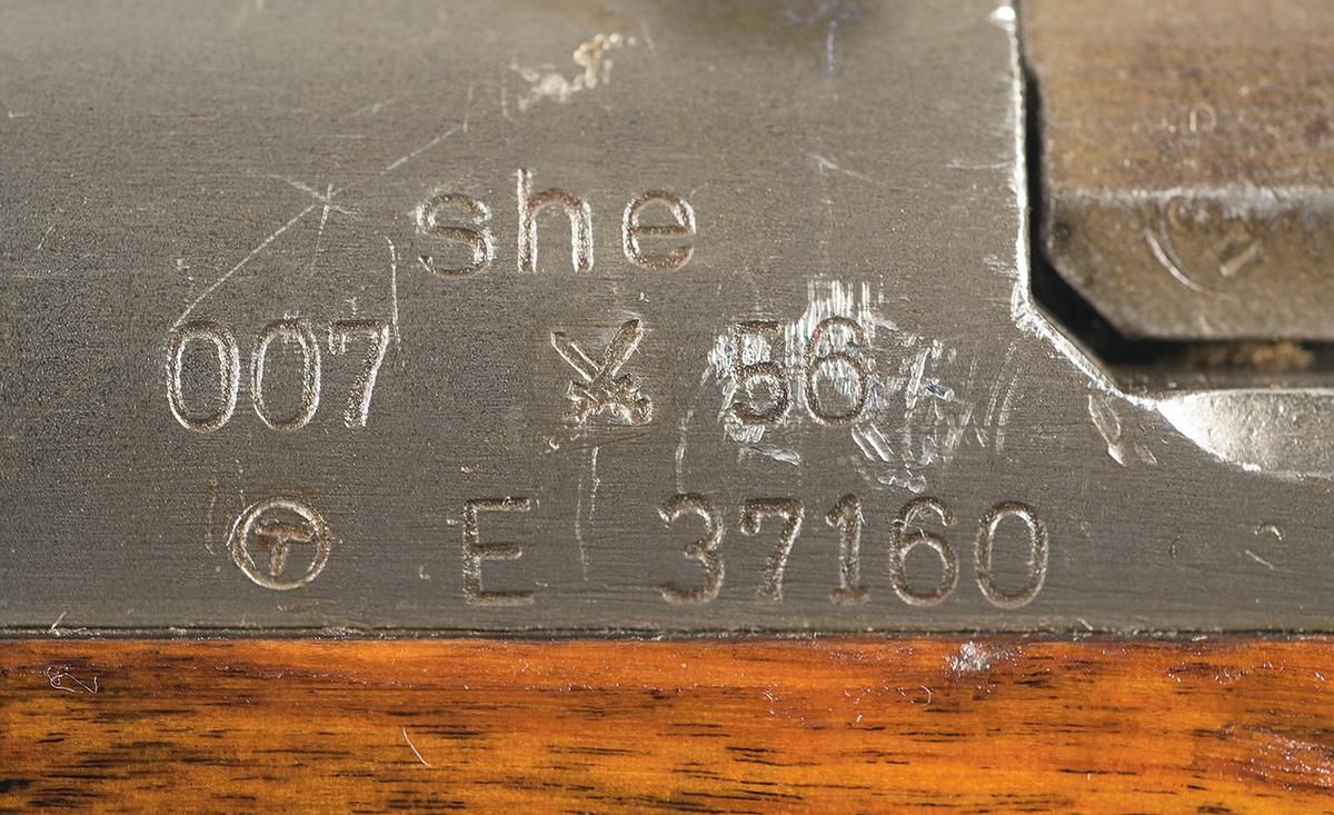 Condition: Excellent, with 98% original blue finish showing some minor thinning on the barrel and some scattered light spotting. The stock is also excellent with a few minor scratches and some minor pressure dents. Mechanically excellent. Bayonet is excellent.