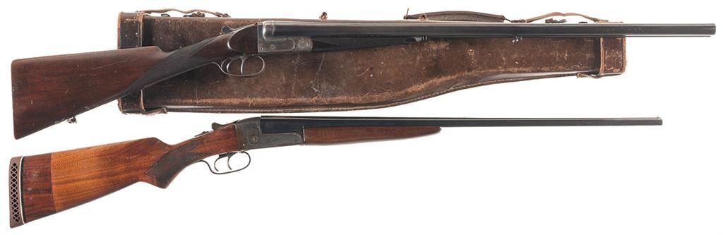 Collector's Lot of Two Side by Side Hammerless Shotguns -A) Unmarked 16 Gauge Belgian Shotgun with Mutton Case