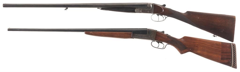 Collector's Lot of Two Side by Side Hammerless Shotguns -A) Unmarked 16 Gauge Belgian Shotgun with M