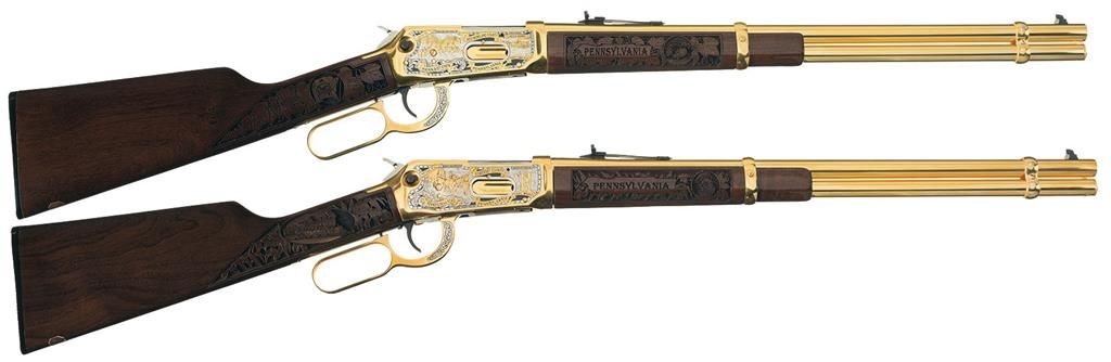 Collector's Lot of Two Winchester Model 94AE Lever Action Carbines with Commemorative S.B.R. Etchings -A) Winchester Model 94AE 10 of 10 Westmoreland County Pennsylvania Saddle Ring Carbine