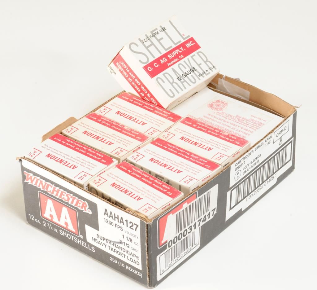 Collector’s lot of 7 boxes of 12 gauge Shell Crackers by O.C. AG supply, Inc.; PAST EXPIRATION DATE OF JULY 1, 1983; COLLECTOR SHELLS ONLY. Est.: $25-$50.