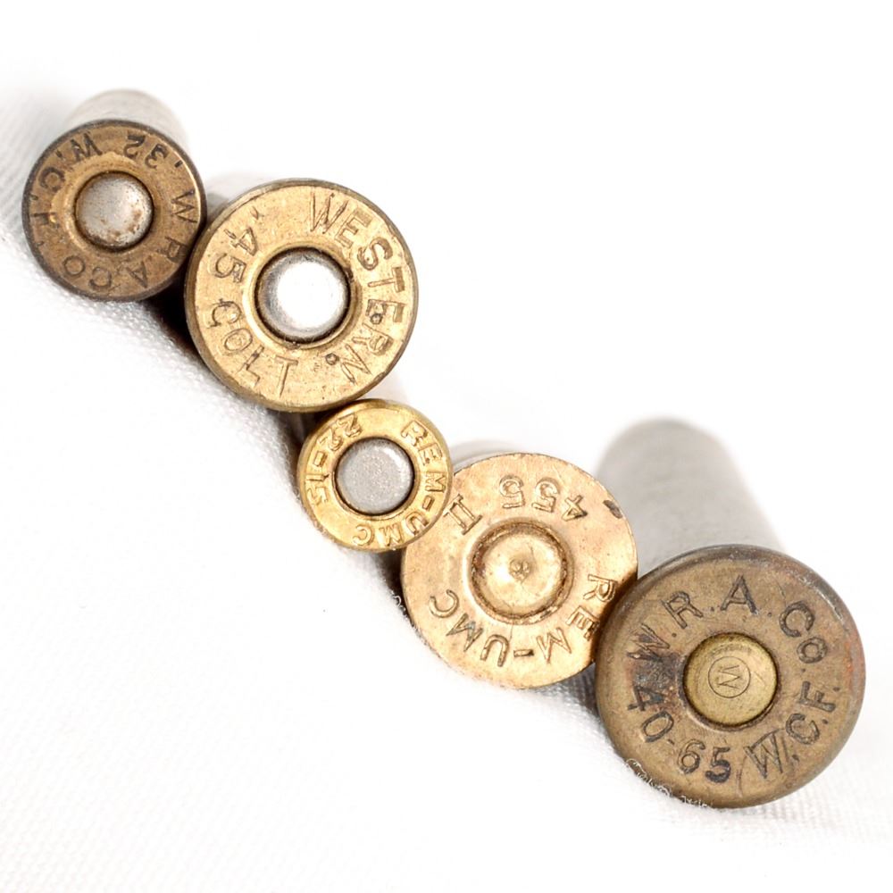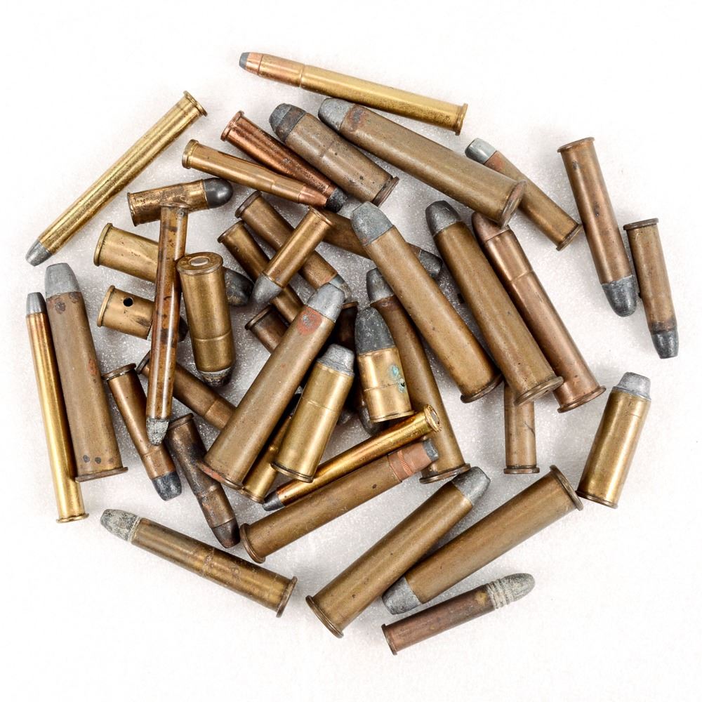 Includes 4 rds 25-25 WRA and UMC, Super Speed Hornet, 22-15 REM UMC, 3 rds 45 Colt Western, wra, and DC, 32 WCF WRA, Mattel Inc USA Toy Round, .44 CF Kynoch Inert, 455 REM UNC inert, 44 D C Co inert, 32 Long Colt WRA, 30 REM UMC, 7rds 40-65 WCF WRA, 44 Manum Super X, 32-20WRA, 32 Extra Long UMC, 2rds 32-35 UMC, and more.