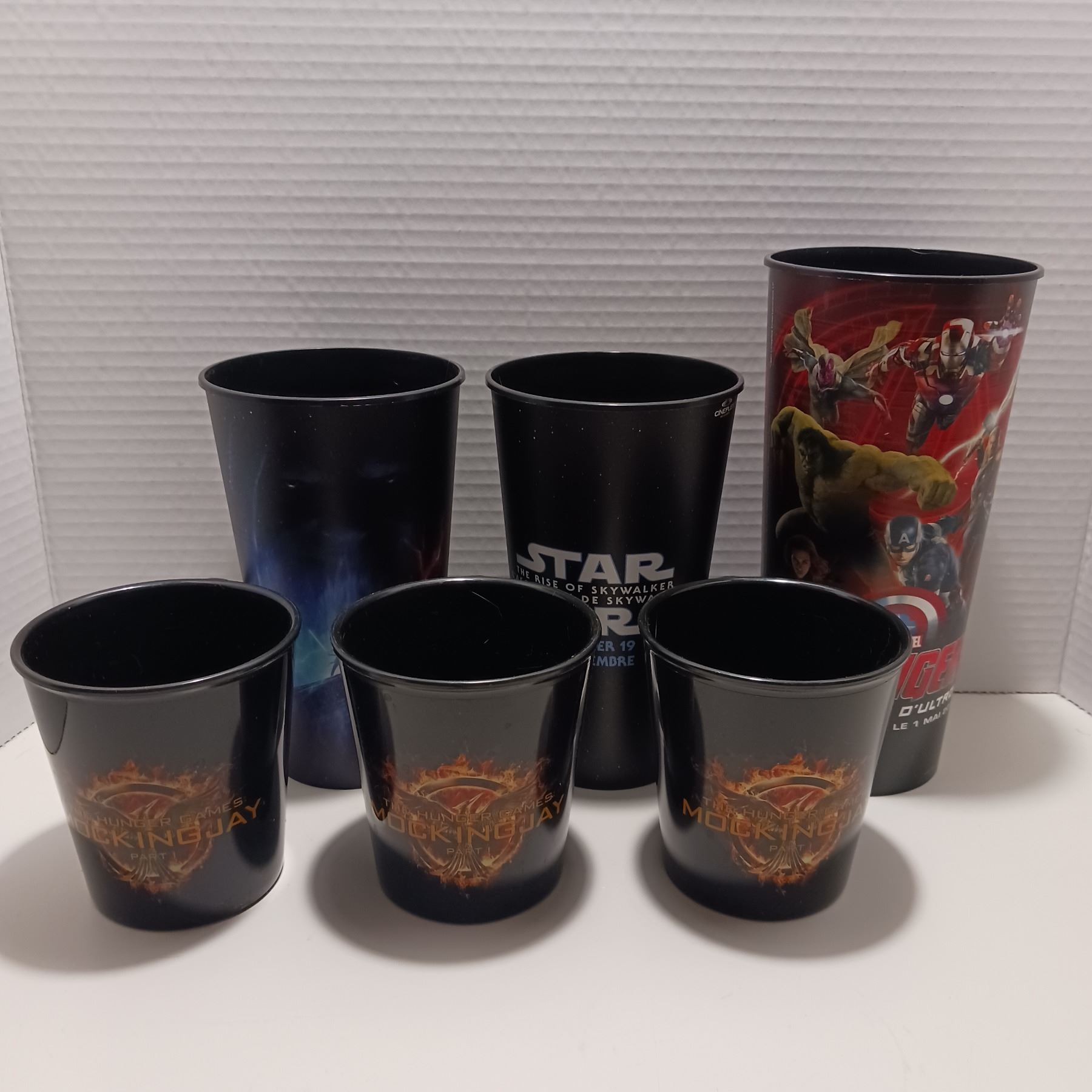 Lot of Collectors Cups, 3 Hunger Games Mockingjay Part 1, 2 Star Wars The Rise Of Skywalker Cineplex, & 8.25" Marvel Avengers Age of Ultron